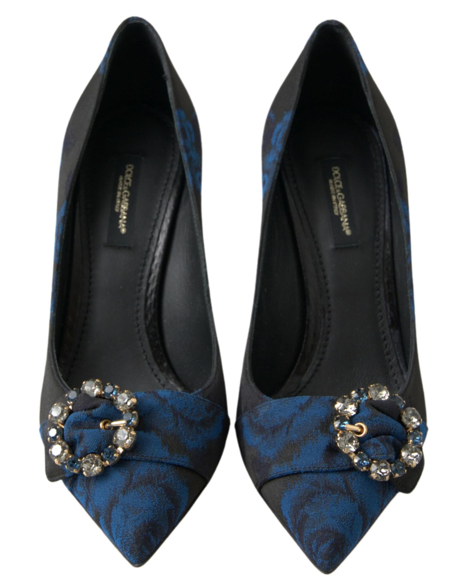 Dolce & Gabbana Women’s Blue Floral Ayers Crystal Pumps Shoes – 37 EU