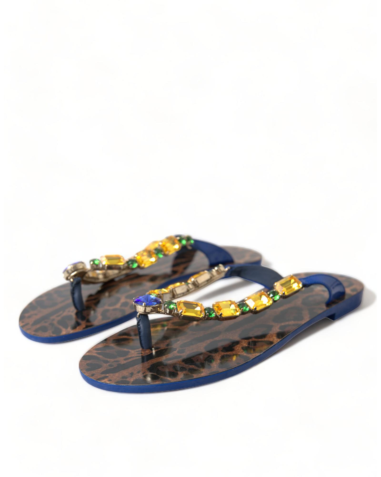Dolce & Gabbana Women’s Elegant Blue Leather Flat Sandals – 35.5 EU