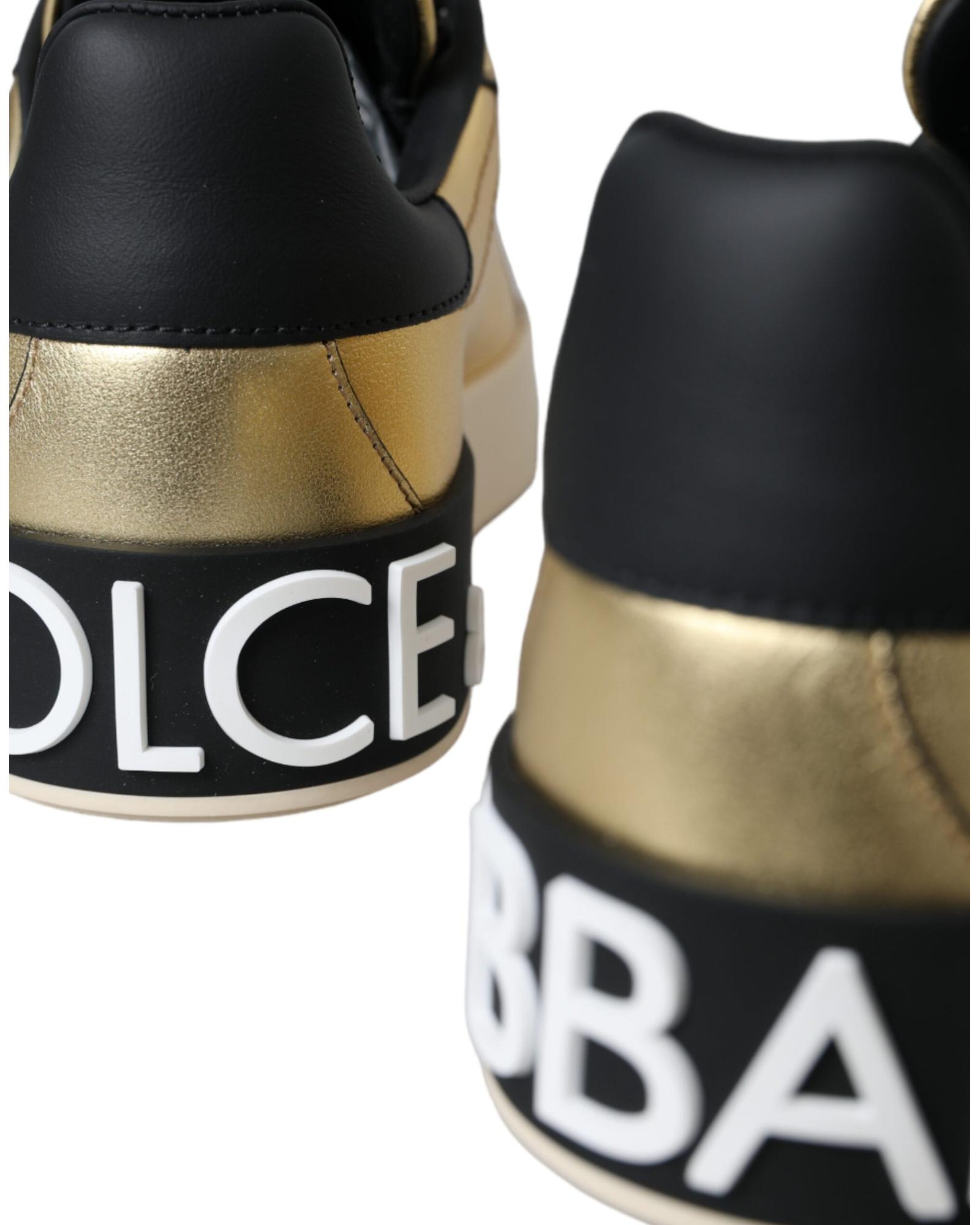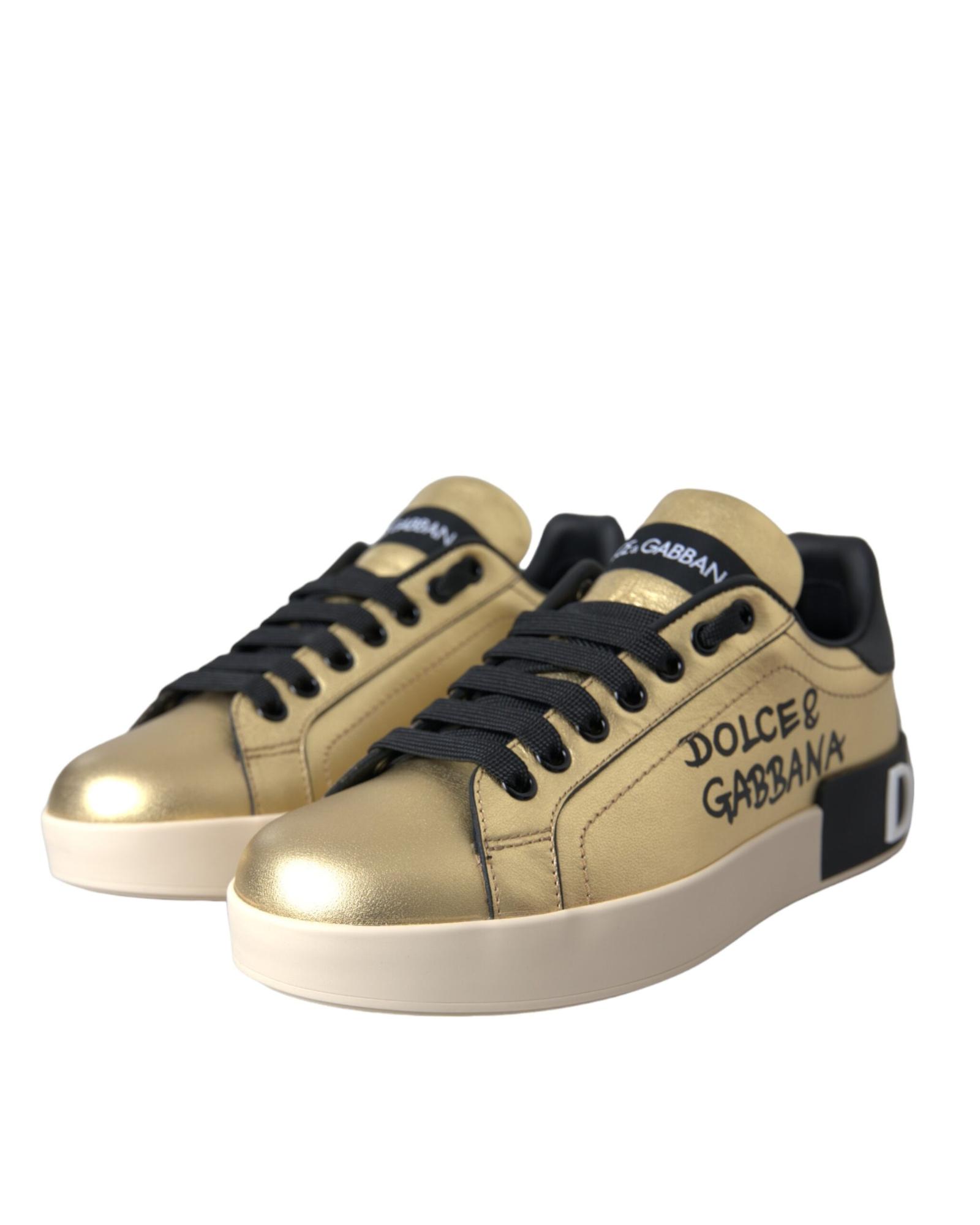 Dolce & Gabbana Women’s Gold Portofino Calf Leather Sneakers Shoes – 37 EU