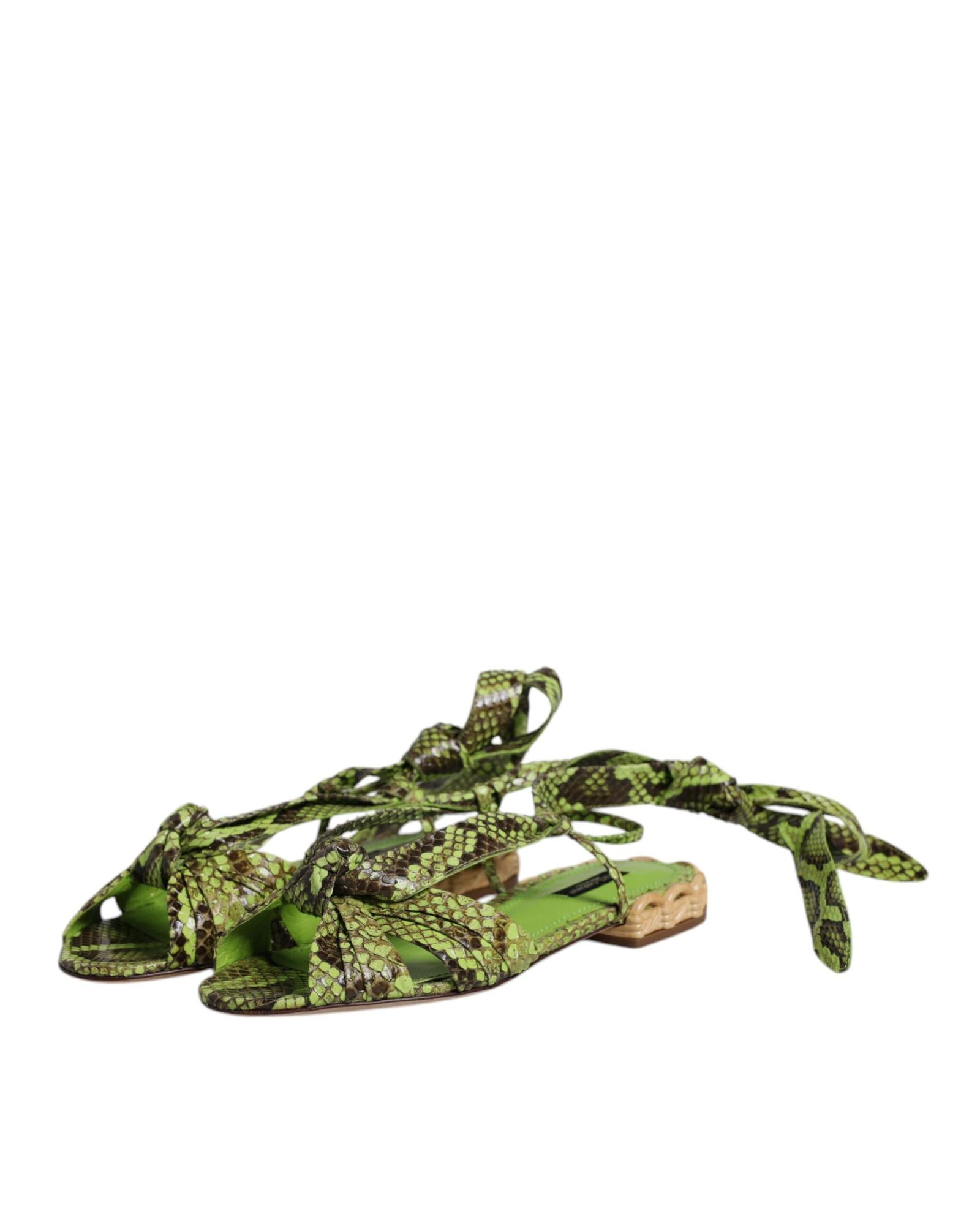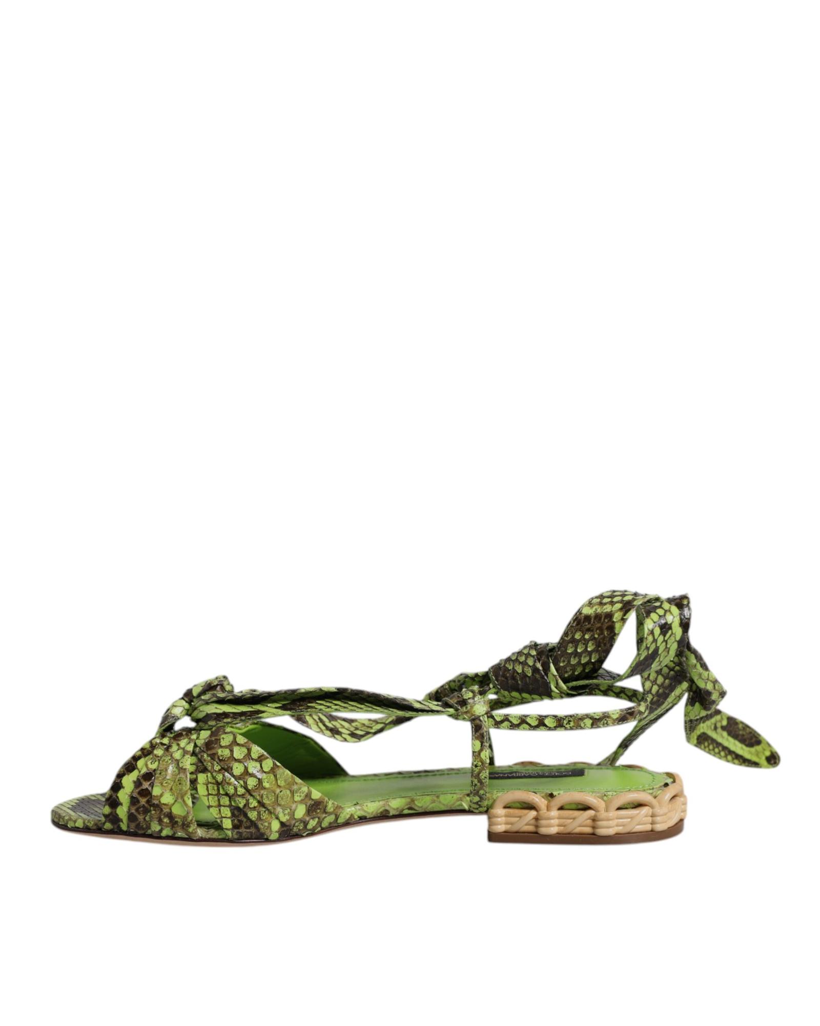 - Green Animal Print Ankle Wrap Sandals by Dolce & Gabbana