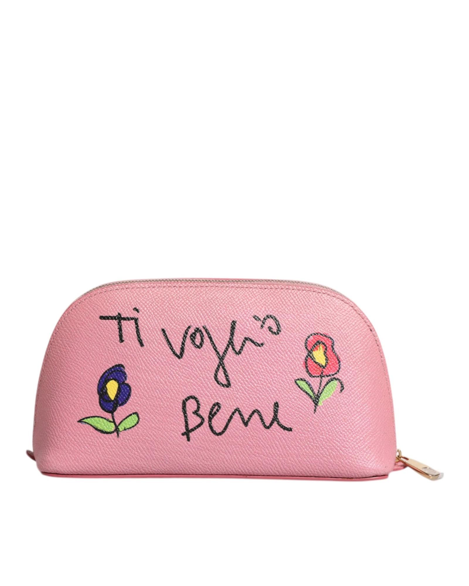 Dolce & Gabbana Women’s Pink Leather DG Logo Zip Around Hand Purse Pouch Wallet – One Size