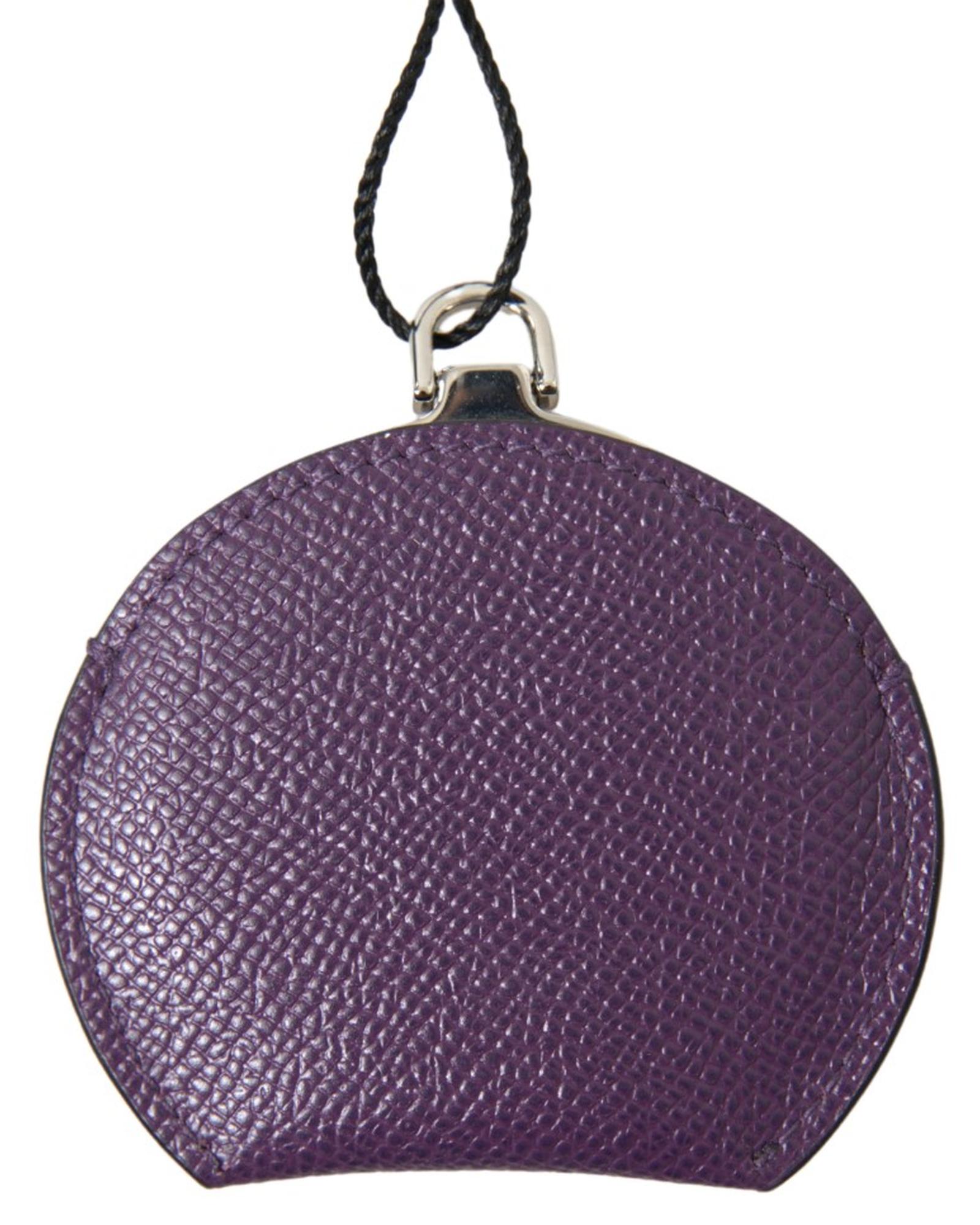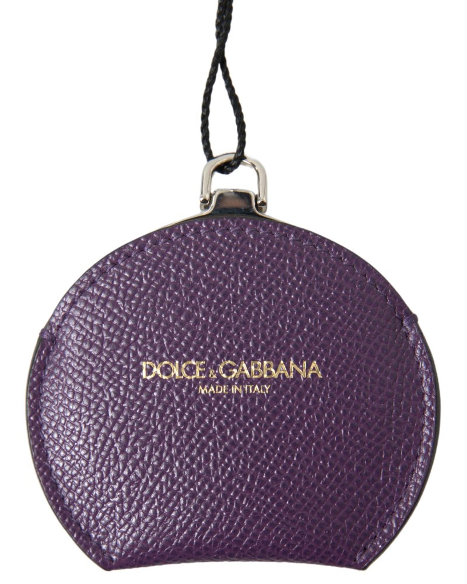 Dolce & Gabbana Women’s Purple Calfskin Leather Round Hand Mirror Holder – One Size