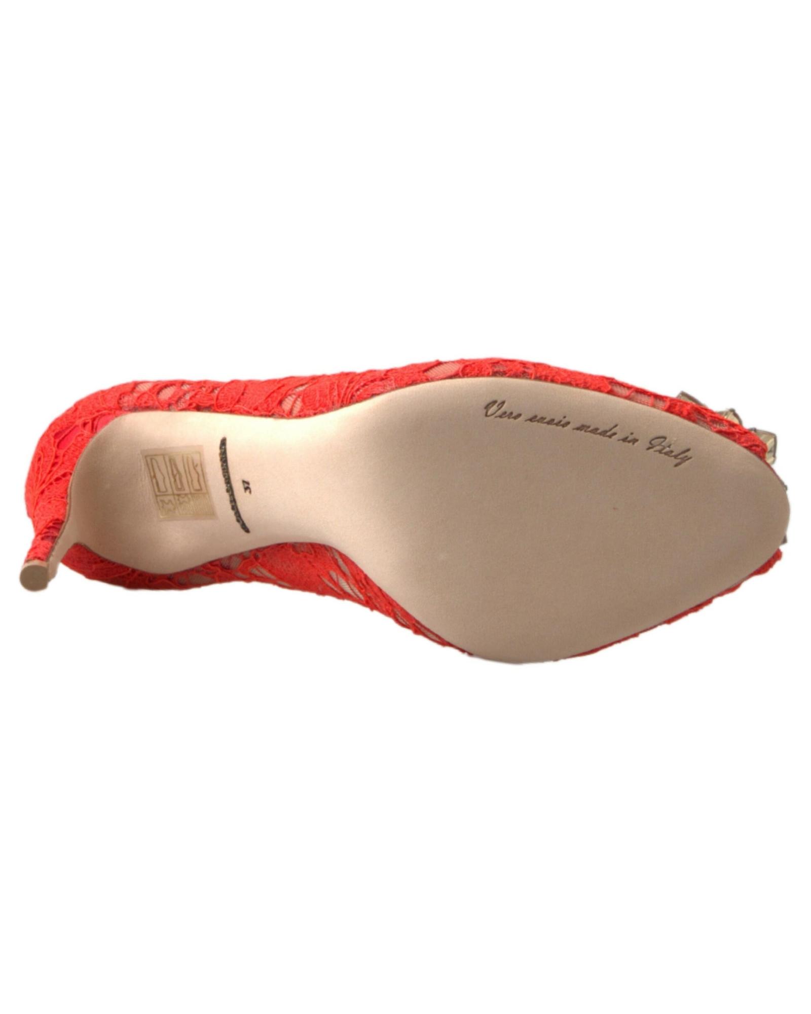 Dolce & Gabbana Women's Red Taormina Lace Crystal Heels Pumps Shoes - 38 EU