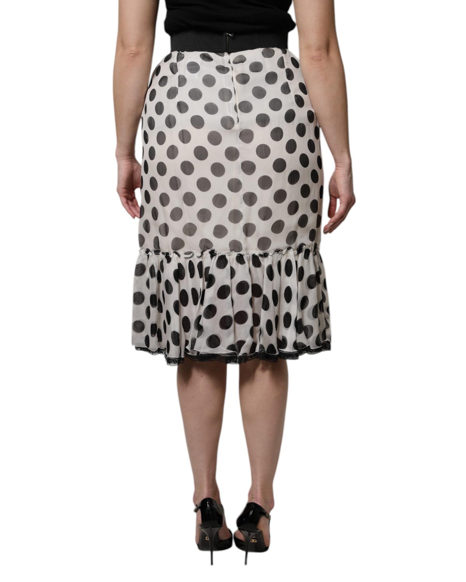 Dolce & Gabbana Women's White Black Polka Dots Knee Length Skirt - 40 IT