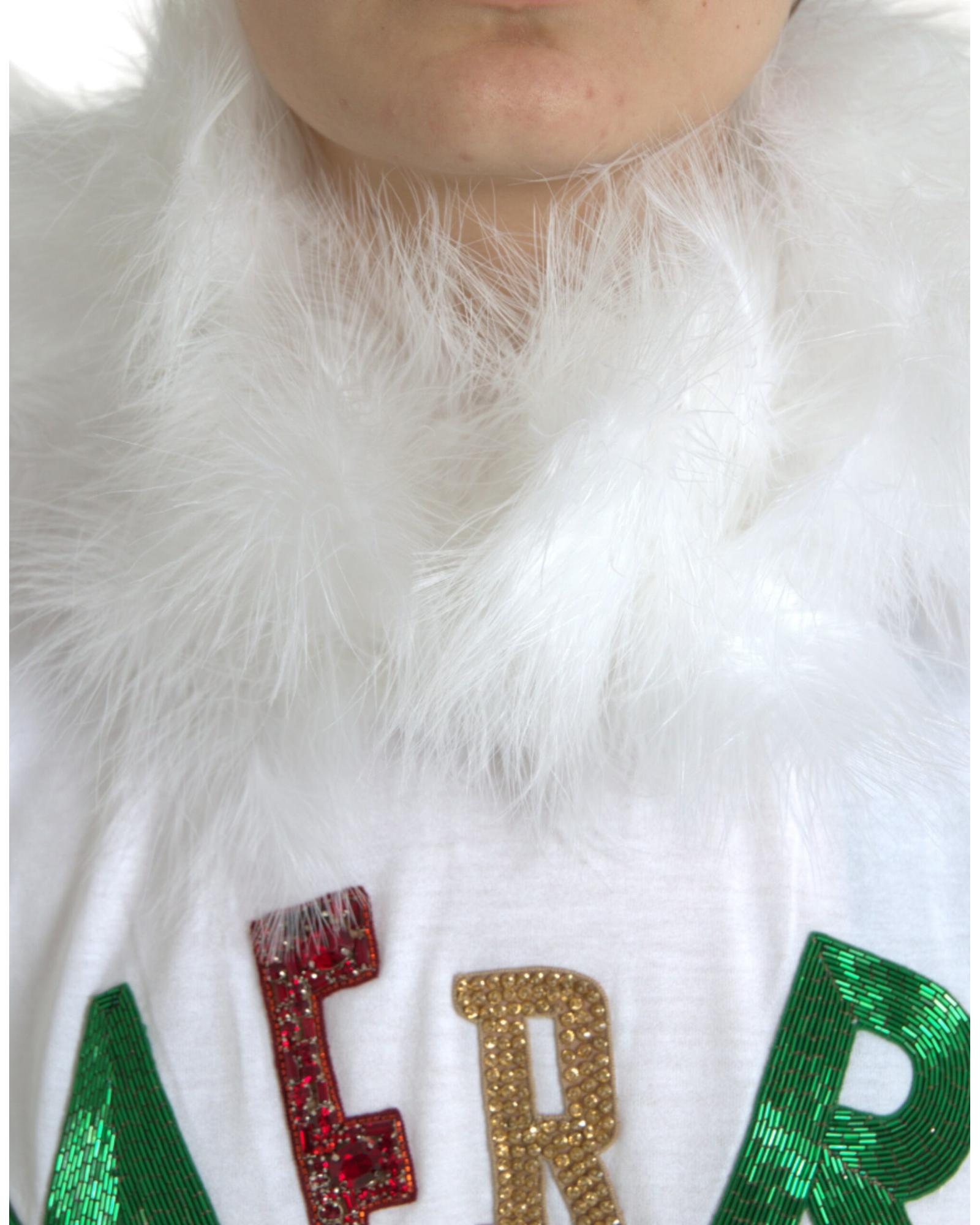 Dolce & Gabbana Women’s White Cotton Christmas Sequin Fur T-shirt – 38 IT
