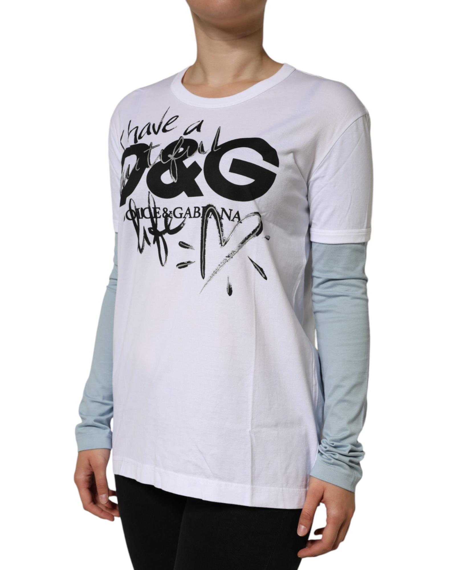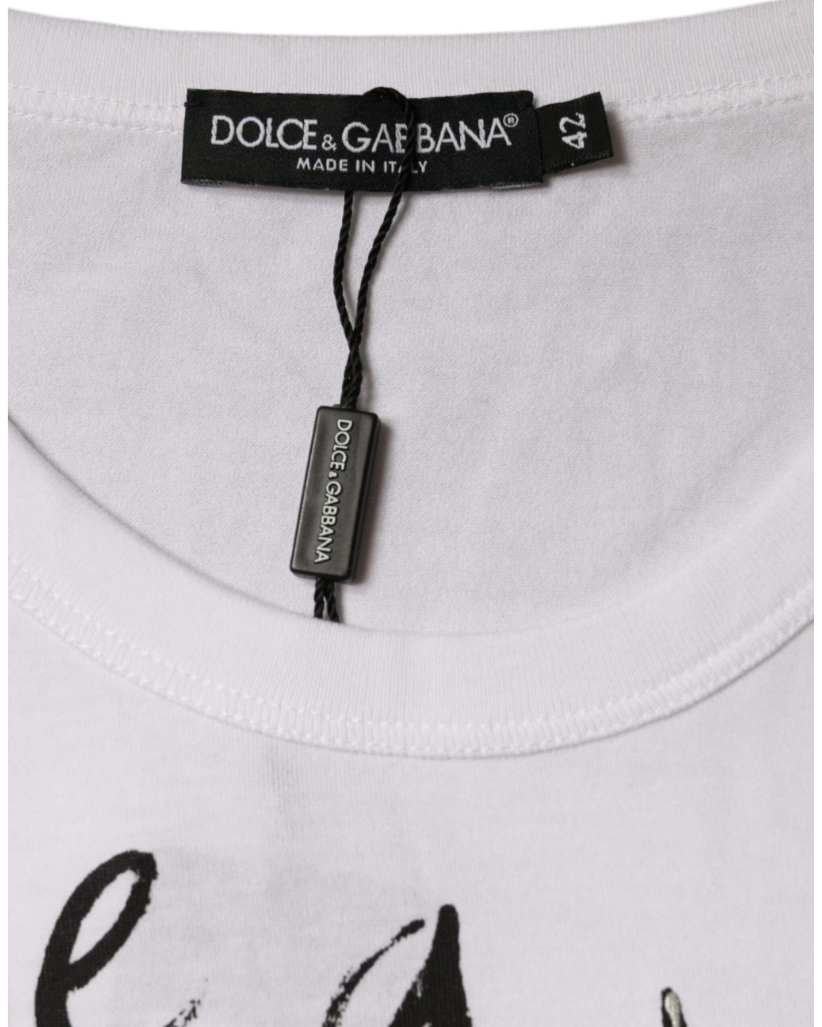Dolce & Gabbana Women’s White Cotton Logo Print Round Neck T-shirt – 42 IT