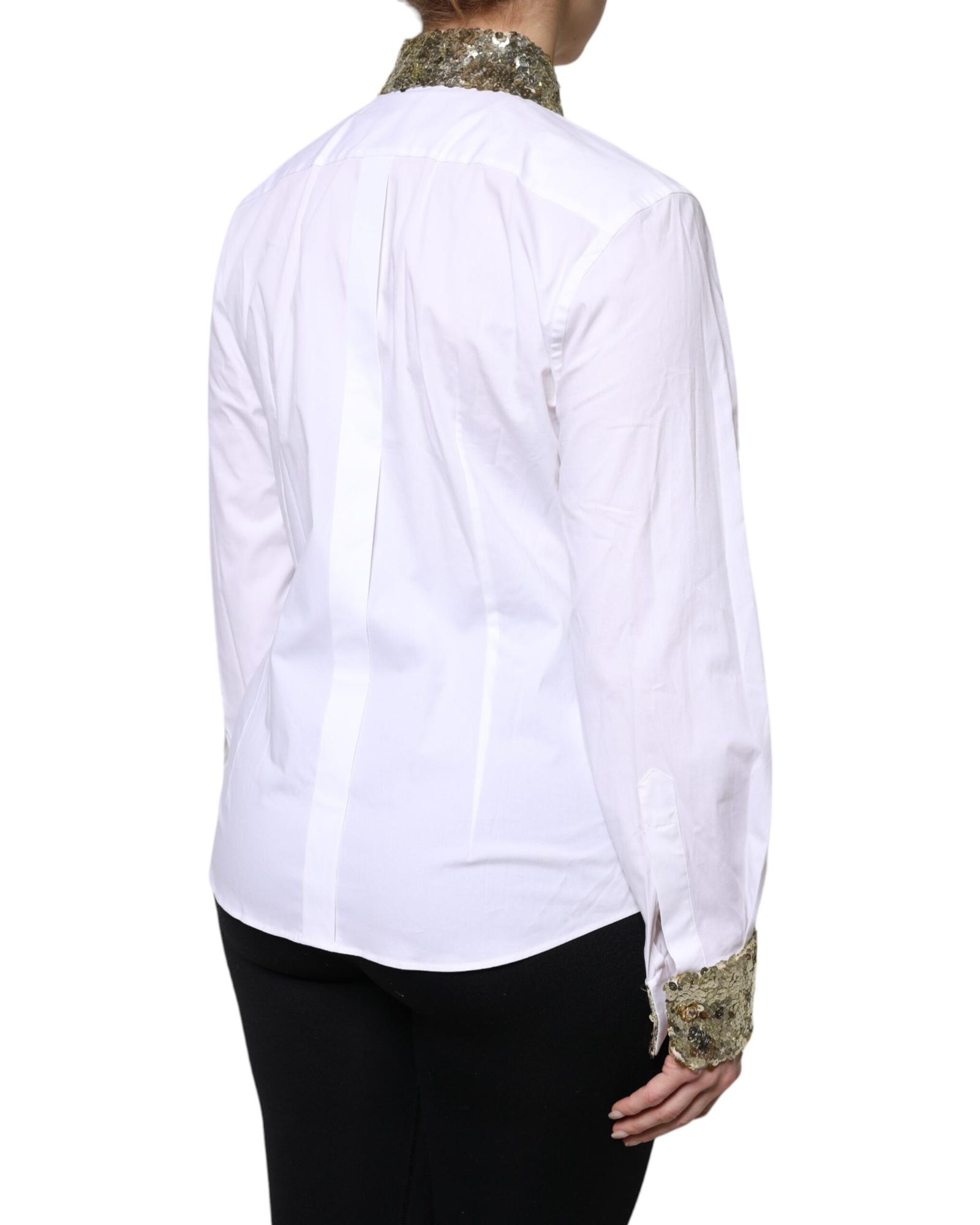 Dolce & Gabbana Women's White Cotton Long Sleeves Sequin Shirt Top - 38 IT