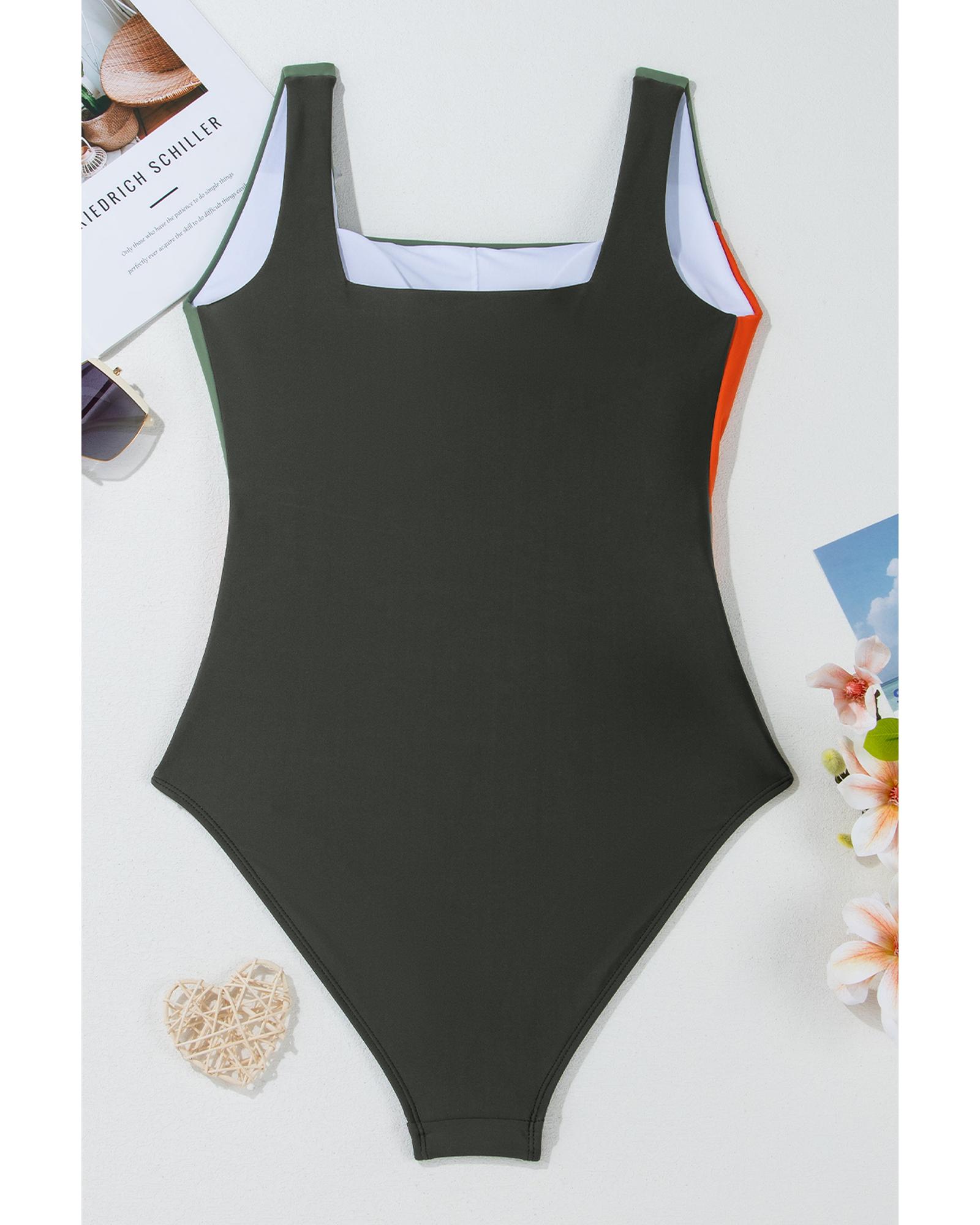 Duffel Green Color Block Padded Square Neck One Piece Swimsuit – L