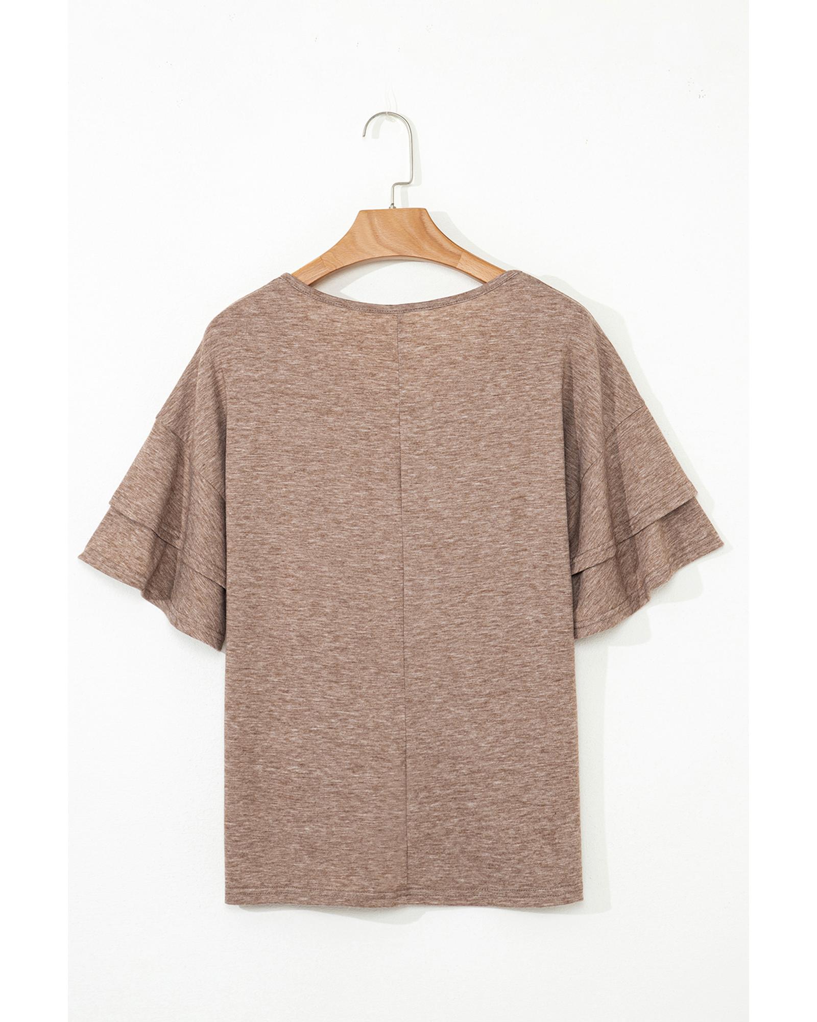 DUNE Solid Colour V-Neck Double Layer Sleeve Loose T-Shirt – 2XL