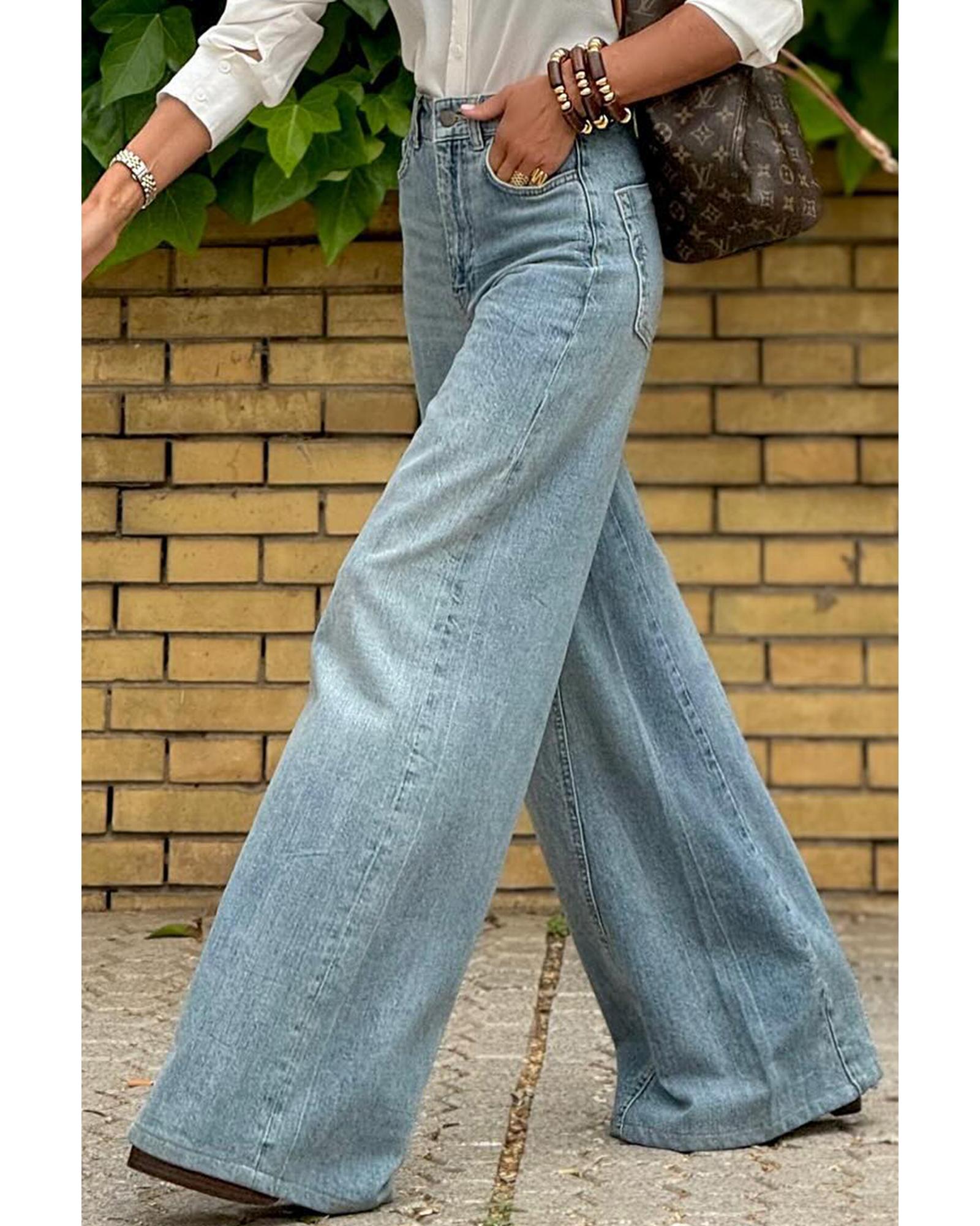 Dusk Blue Acid Wash Extra Wide Leg High Waist Long Jeans – 10 US