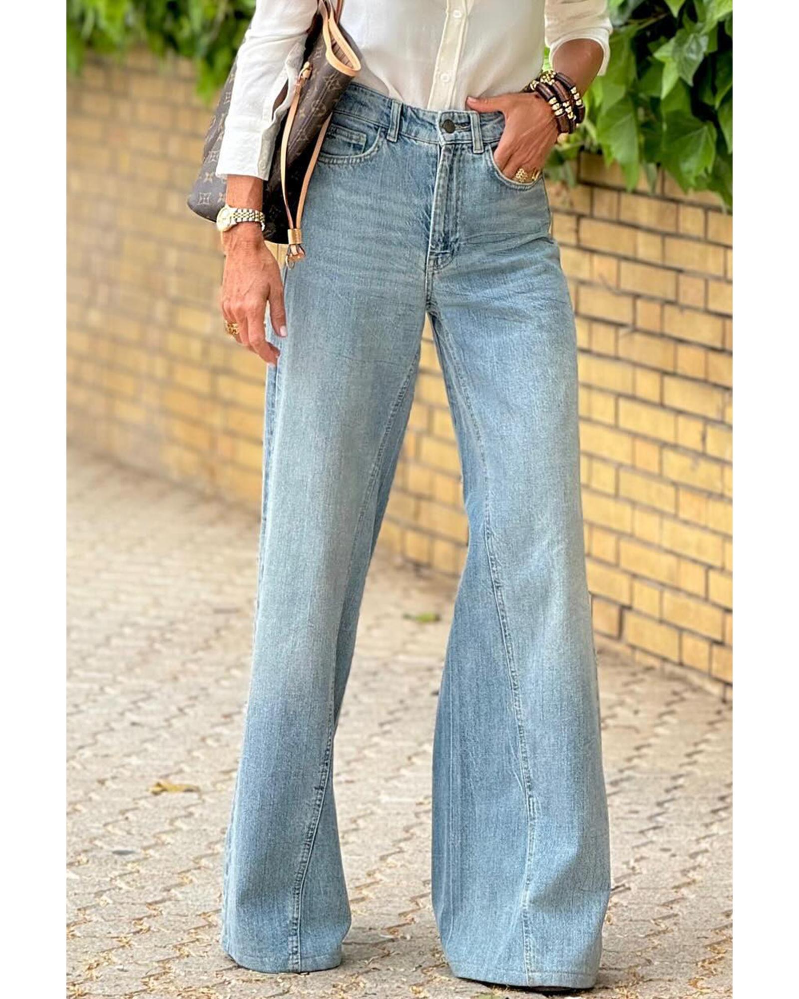 Dusk Blue Acid Wash Extra Wide Leg High Waist Long Jeans - 8 US Original price was: $81.99.Current price is: $44.99.
