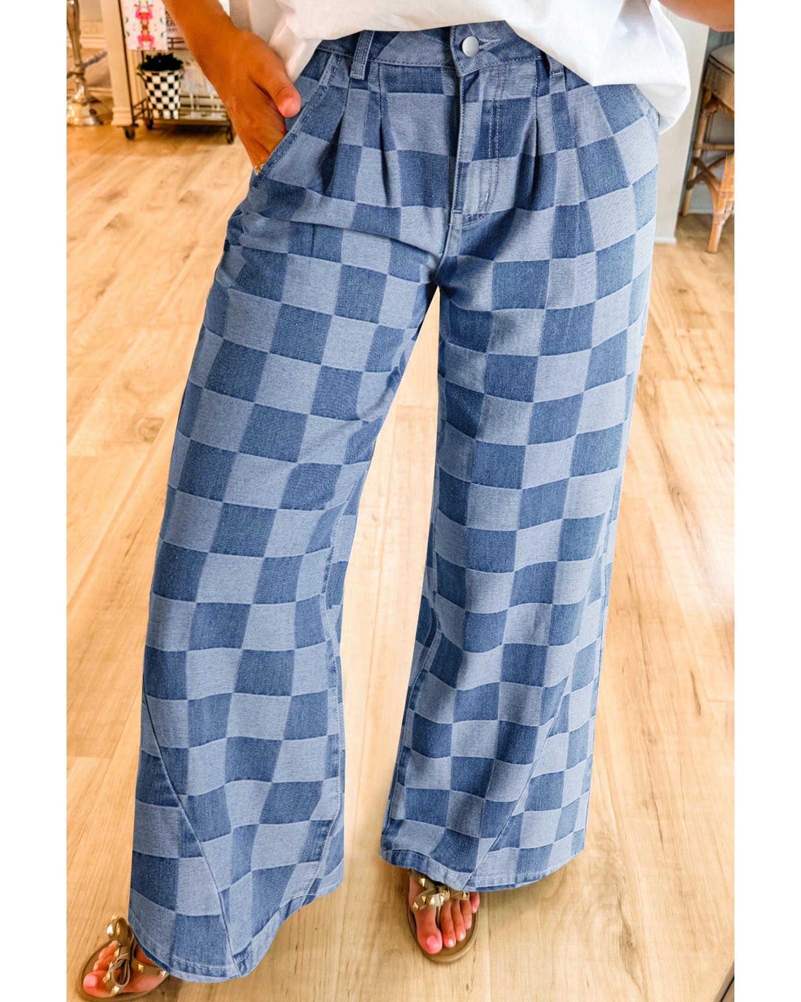 Dusk Blue Checkered Denim Wide Leg Jeans – 12 US