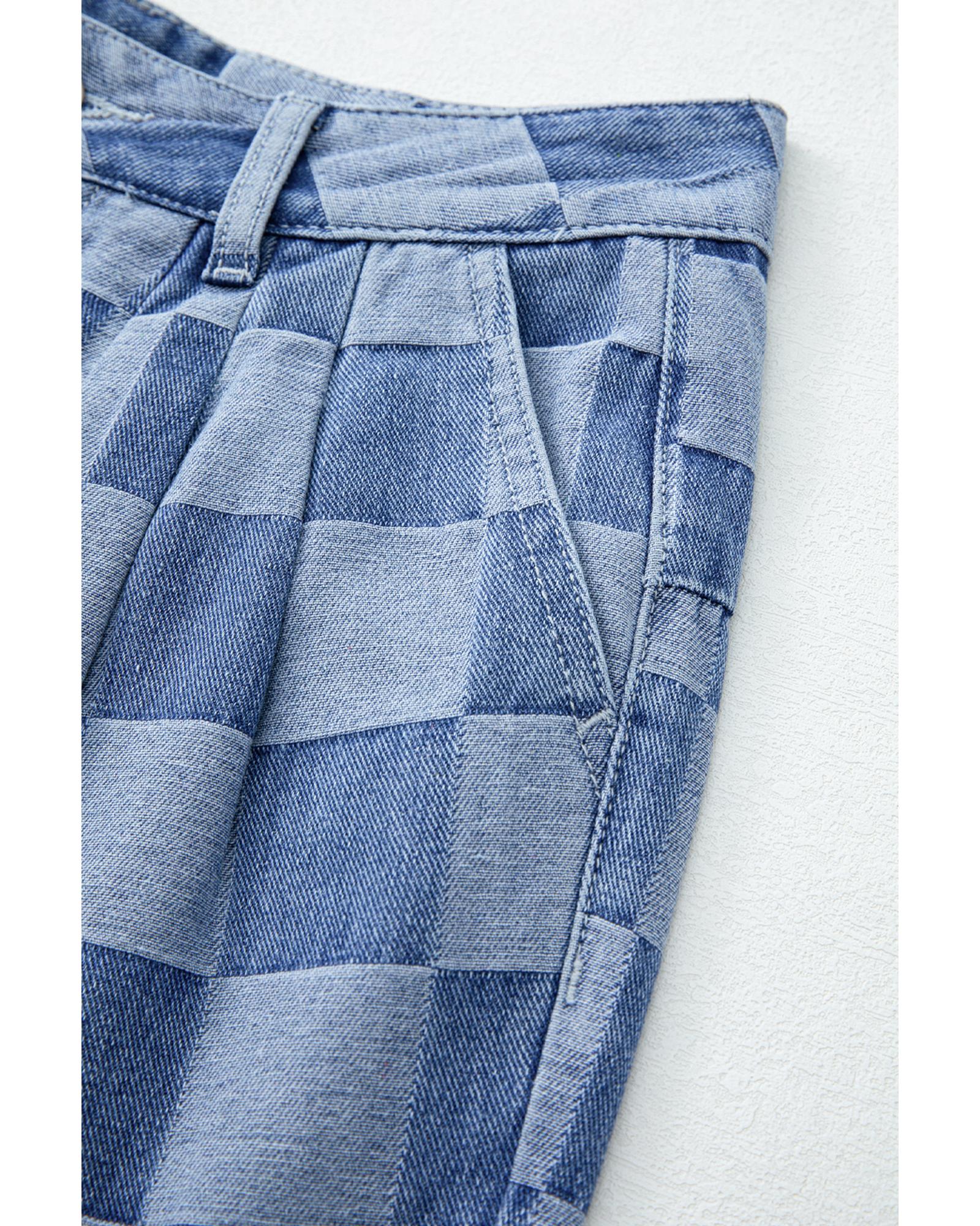 Dusk Blue Checkered Denim Wide Leg Jeans - 6 US