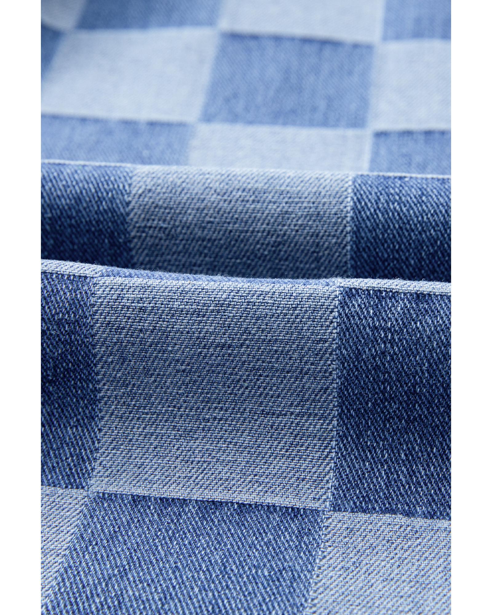 Dusk Blue Checkered Denim Wide Leg Jeans - 4 US