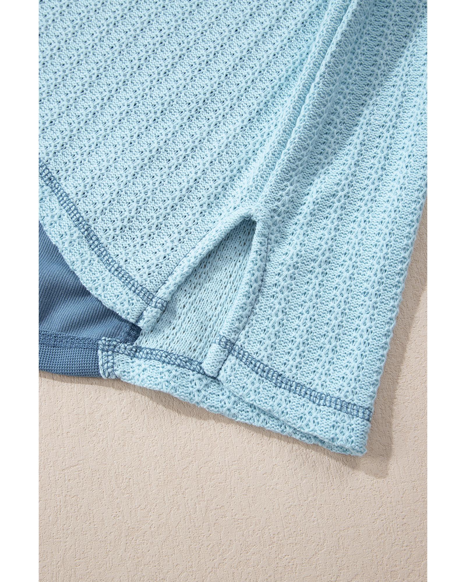 Dusk Blue Colorblock Stitching Patchwork Buttoned Long Sleeve Top – M