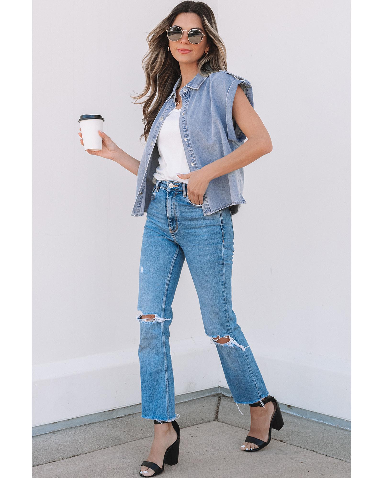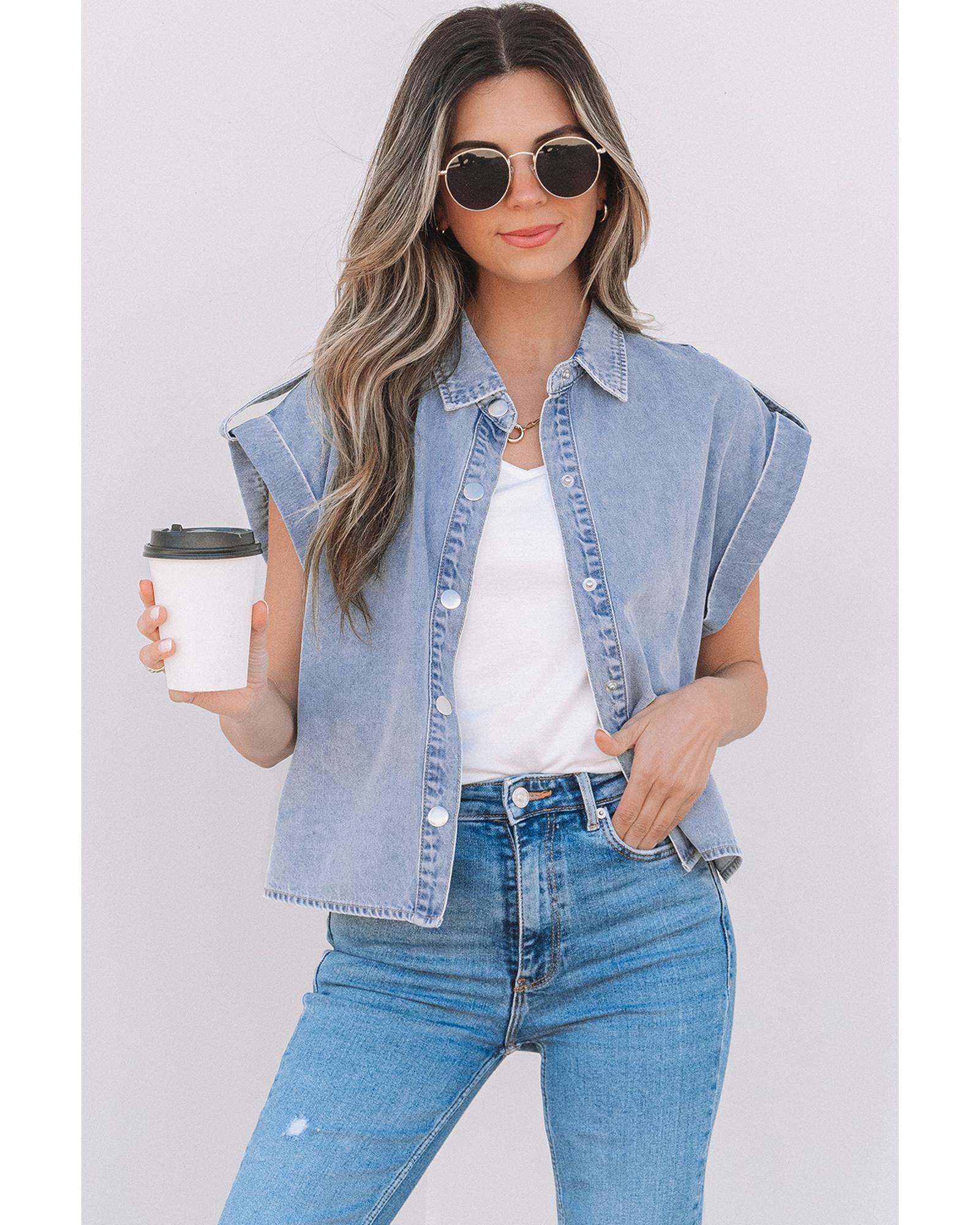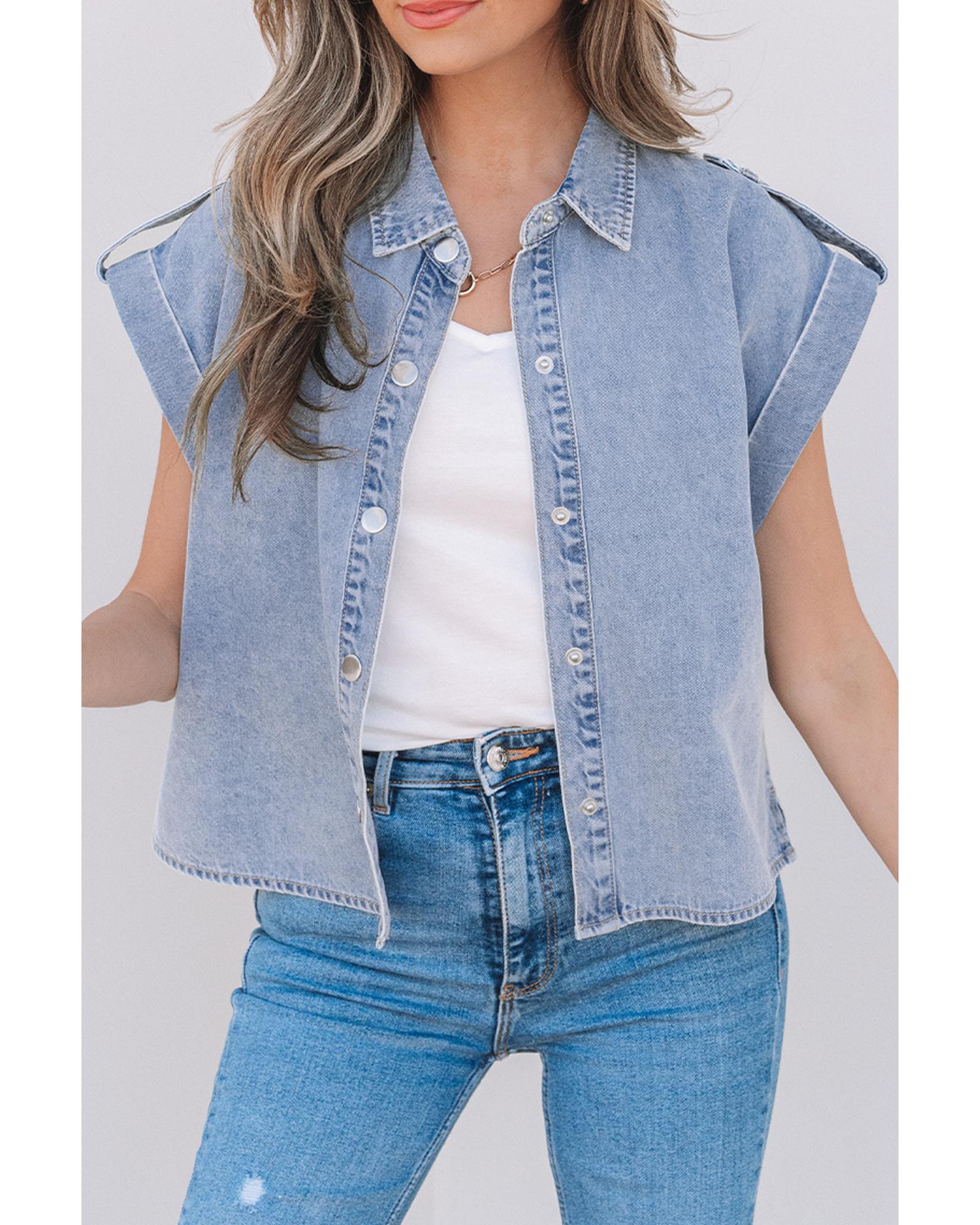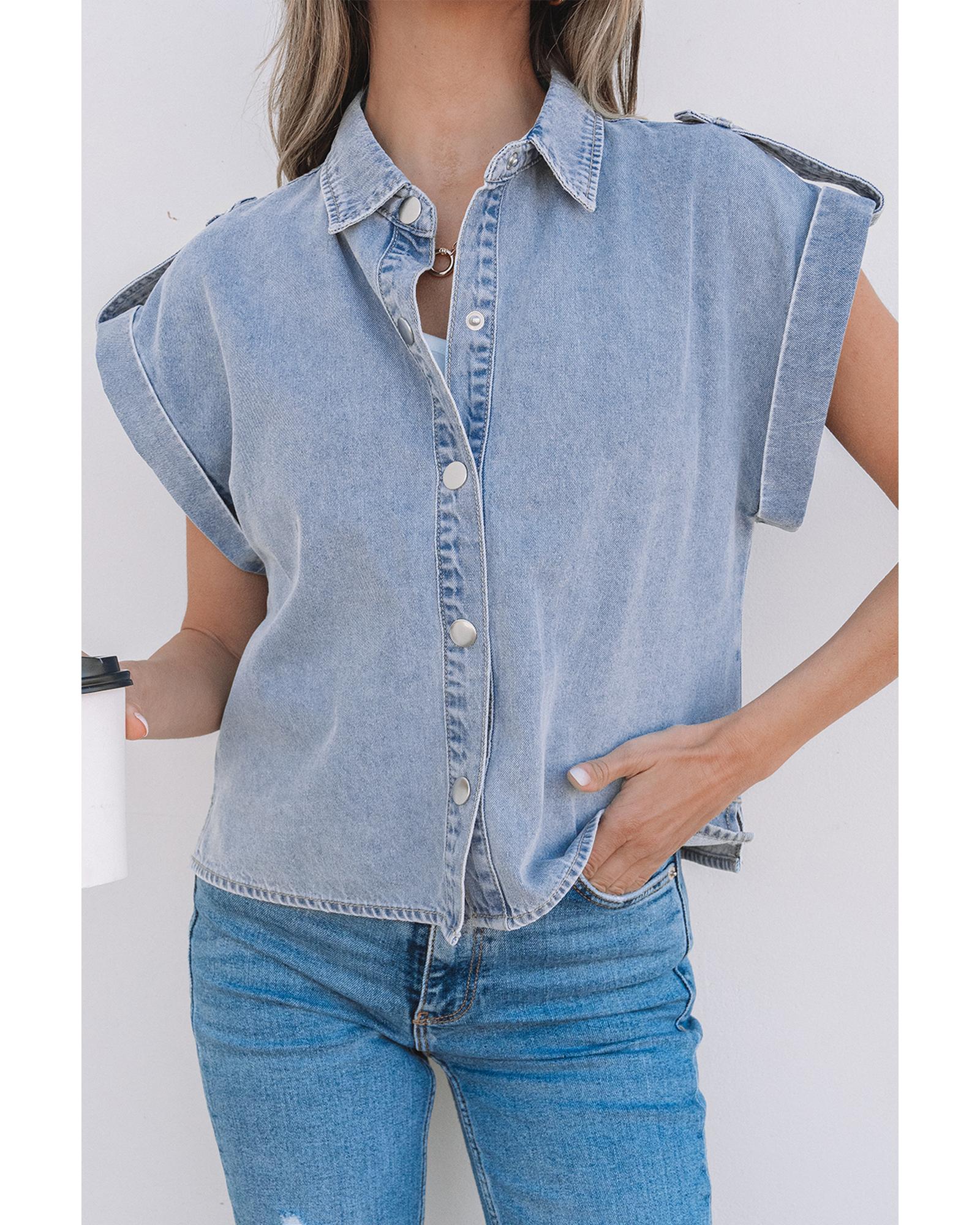 Dusk Blue Denim Pinup Folded Cap Sleeve Shirt – S