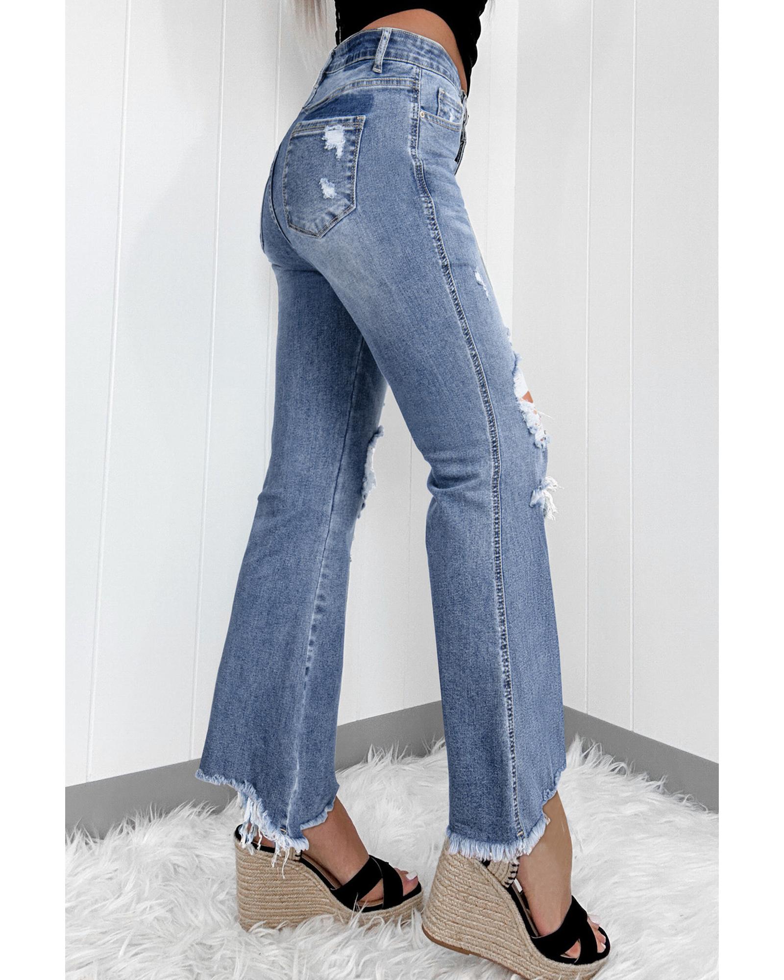 Dusk Blue High Rise Ripped Distressed Hem Flared Jeans – 10 US