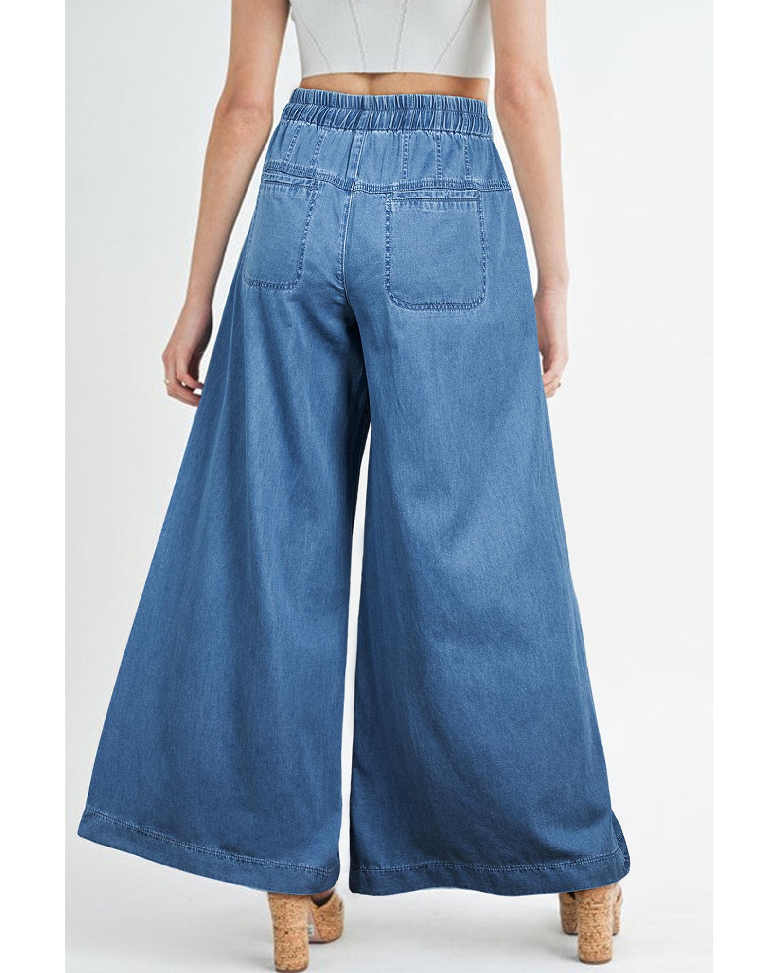 Dusk Blue Mineral Wash Button Fly Waist Wide Leg Jeans – 10 US