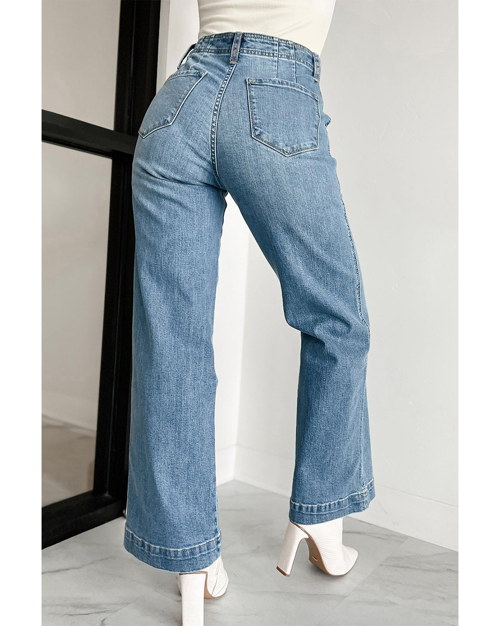 Dusk Blue Multi Buttons Medium Wash Straight Loose Leg Jeans – 8 US