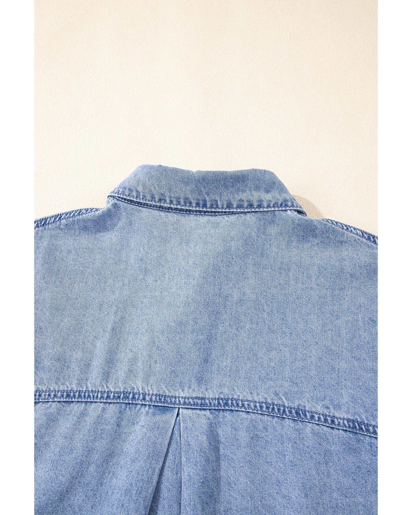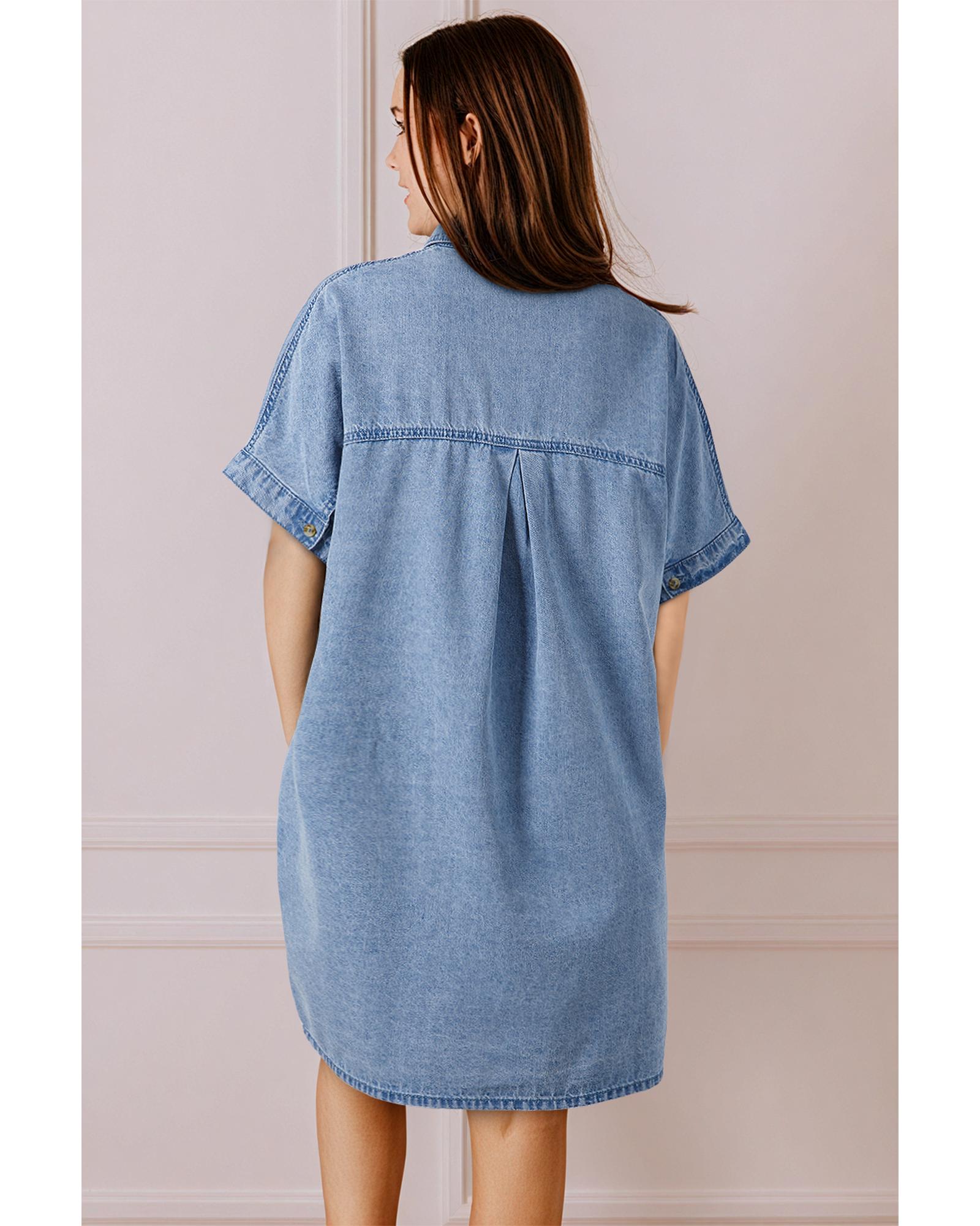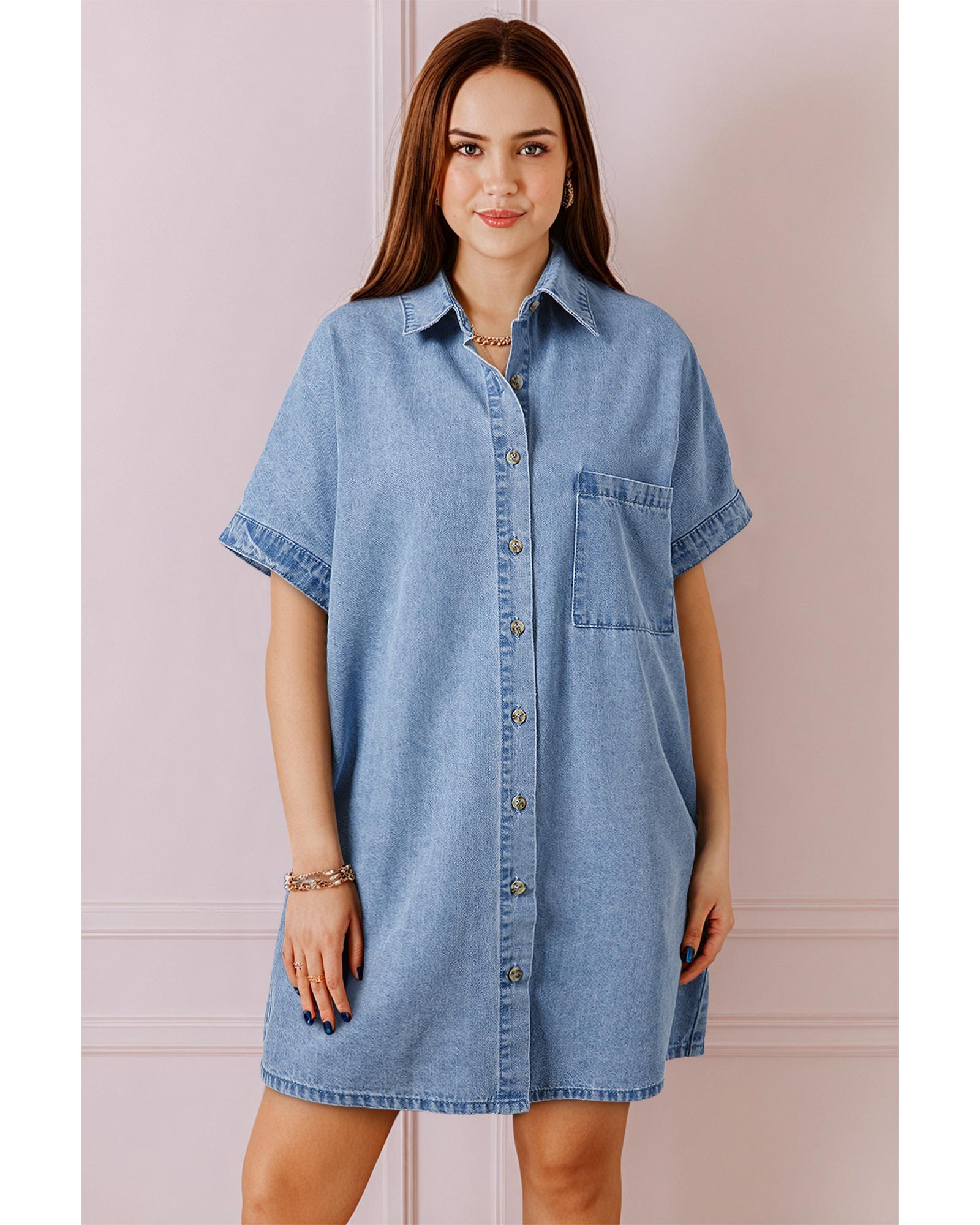 Dusk Blue Short Sleeve Pocketed Button up Denim Tunic Dress - XL Original price was: $79.99.Current price is: $43.99.
