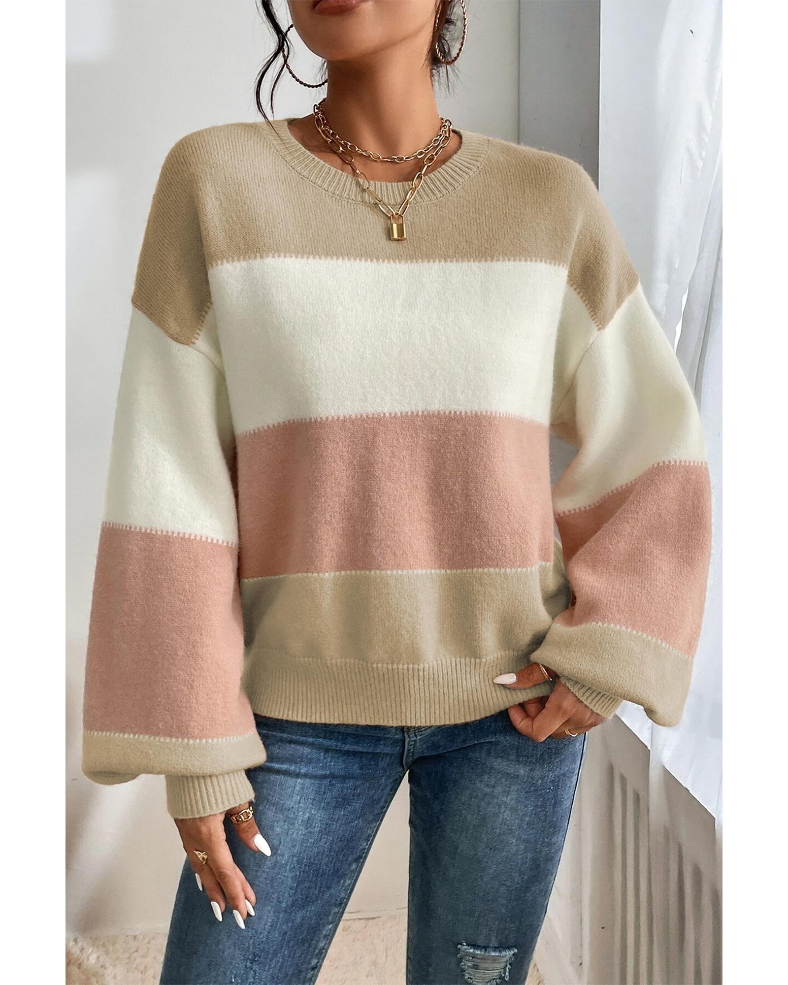 Dusty Pink Color Block Lantern Sleeve Drop Shoulder Sweater – L