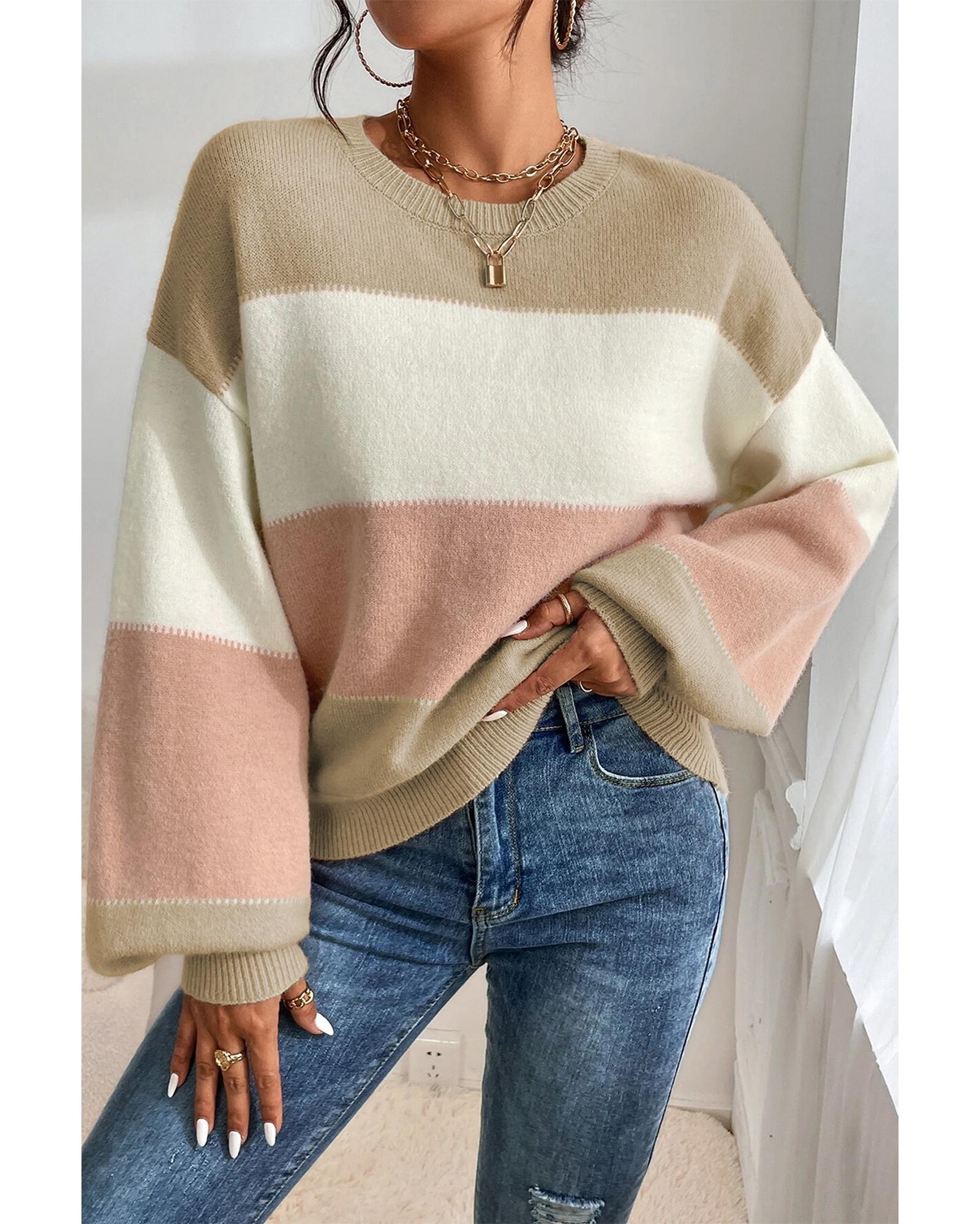 Dusty Pink Color Block Lantern Sleeve Drop Shoulder Sweater – XL