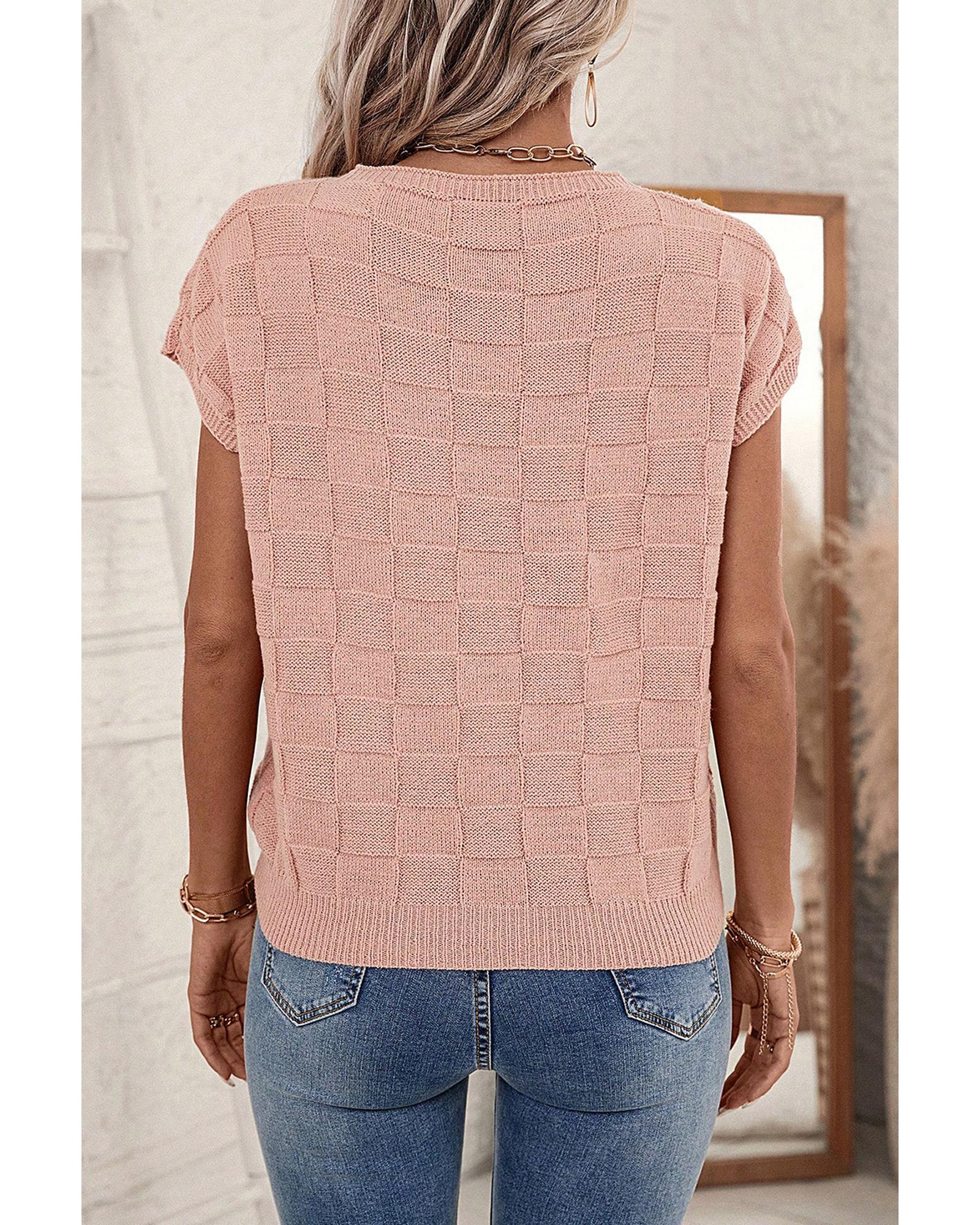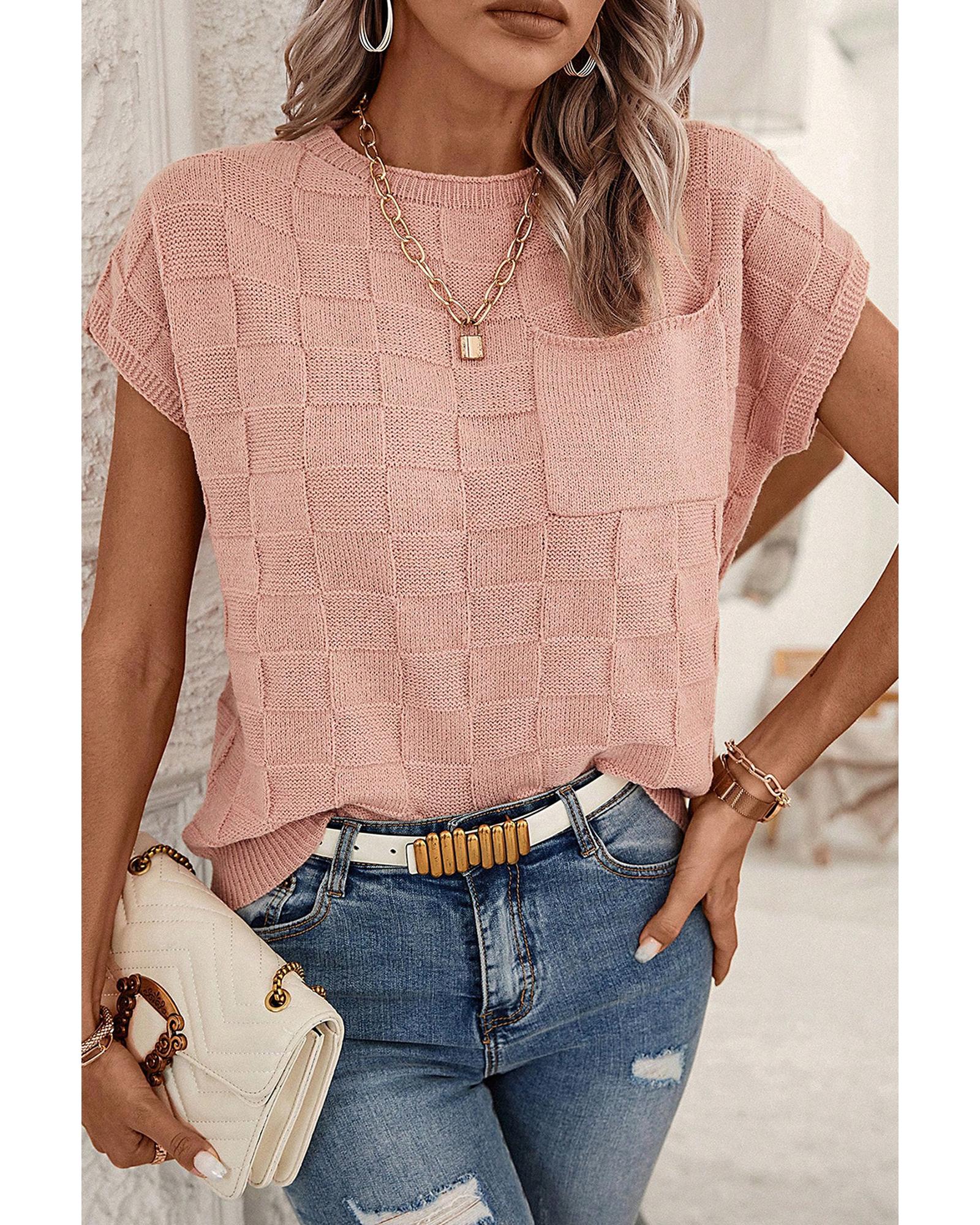 Dusty Pink Lattice Textured Knit Short Sleeve Sweater – XL