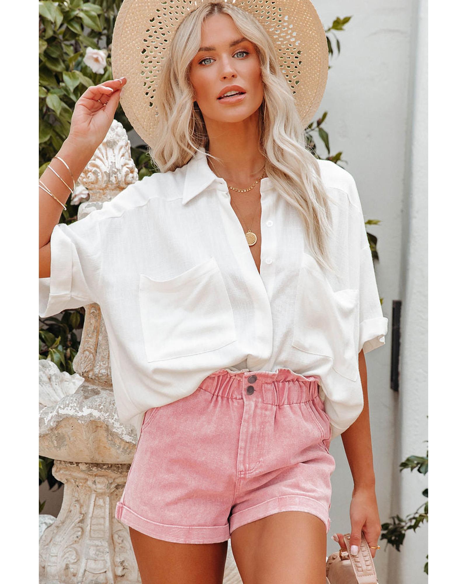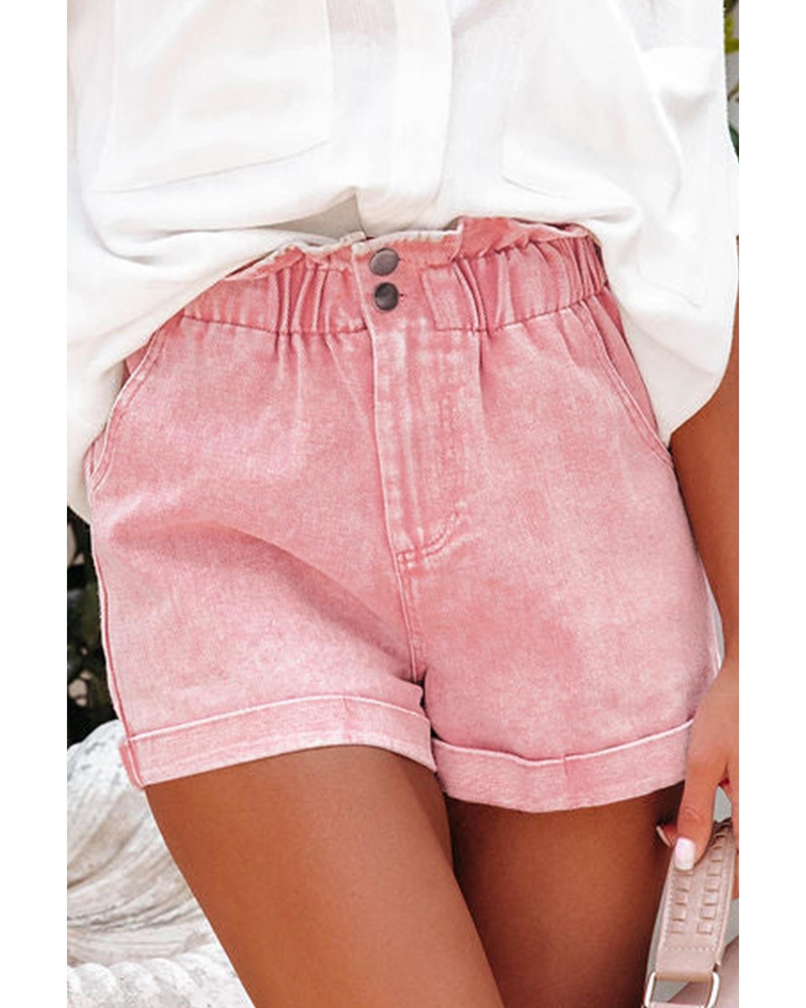 Dusty Pink Vintage Washed Frilled High Waist Denim Shorts – 10 US