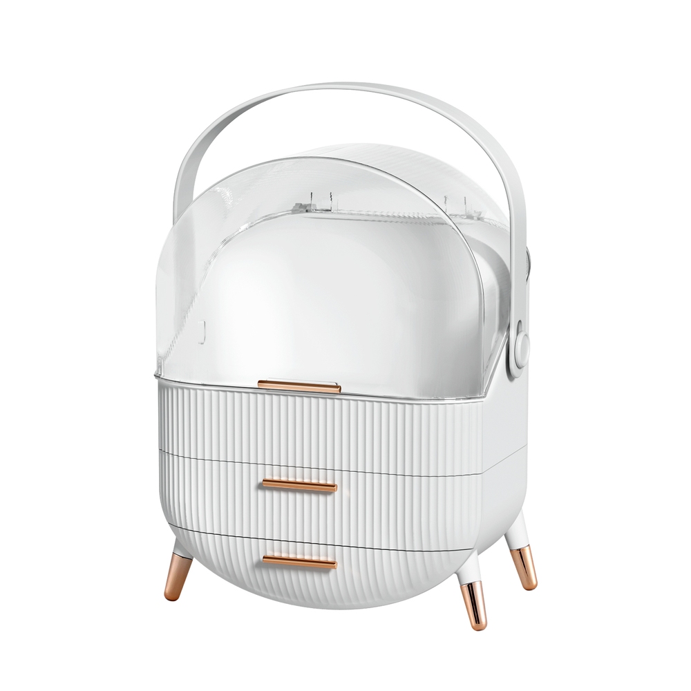 The Embellir makeup case is a dream come true for beauty enthusiasts on the go. Featuring a convenient carry handle and a space-saving, portable design, it lets you take your entire cosmetic collection with you wherever you travel. Two delicate sliding drawers and a spacious top section offer plenty of organised storage, while the lockable hoist buckle keeps everything secure. Additionally, the waterproof material makes it resistant to spills and splashes, and the easy-to-clean design ensures a mess-free experience.
