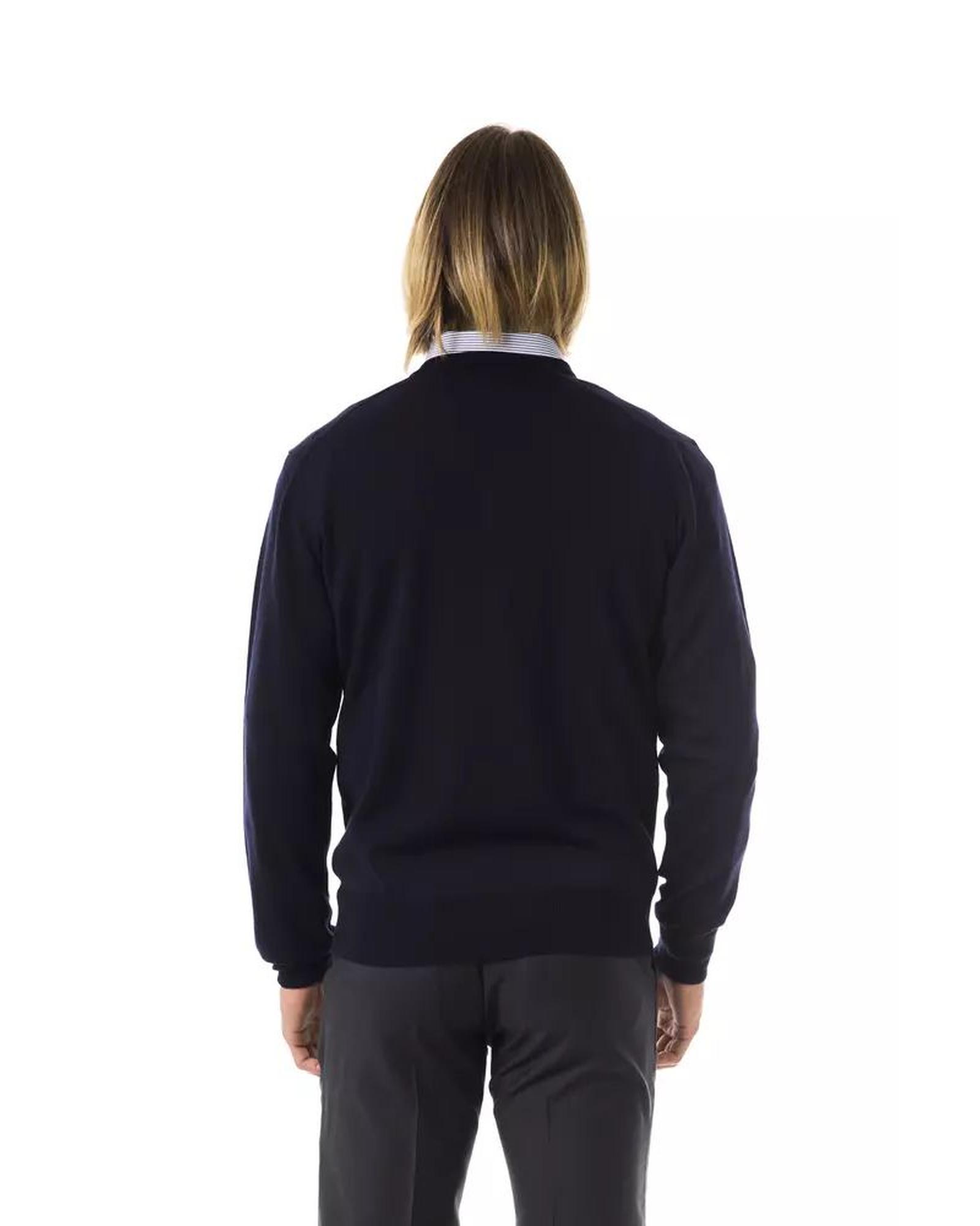 Embroidered V-neck Sweater in Extrafine Merino Wool M Men