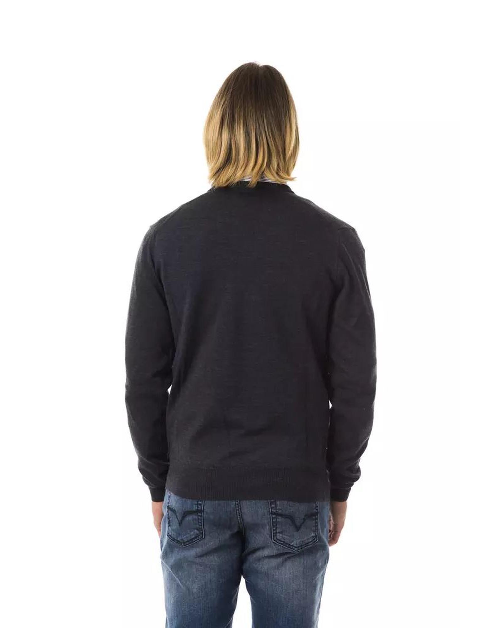 Embroidered V-neck Sweater in Extrafine Wool Merinos Fabric M Men