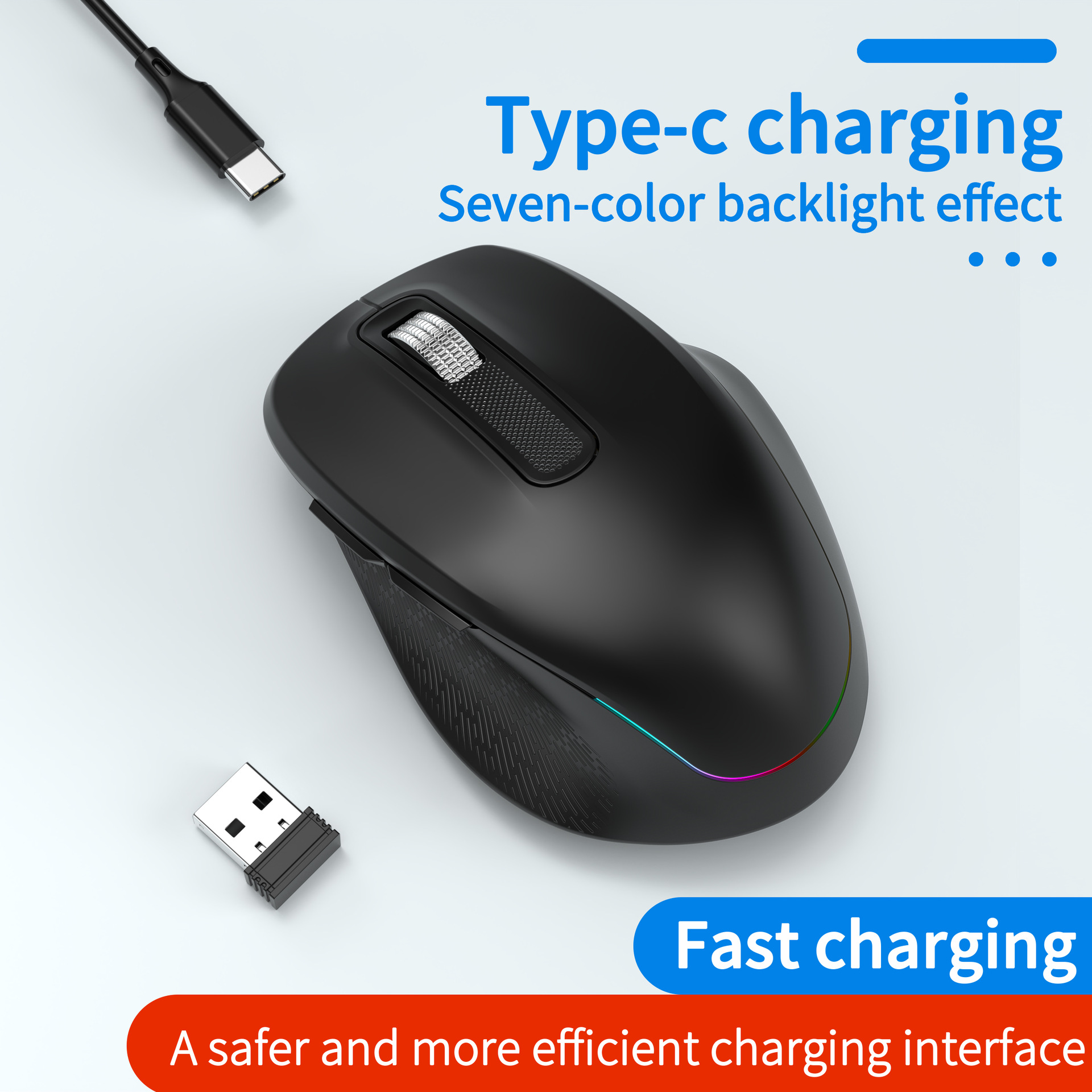 Ergonomic 2.4G Wireless & Bluetooth Dual Mode RGB Backlit Mouse with Type-C Charging – Silent Click for Laptop PC