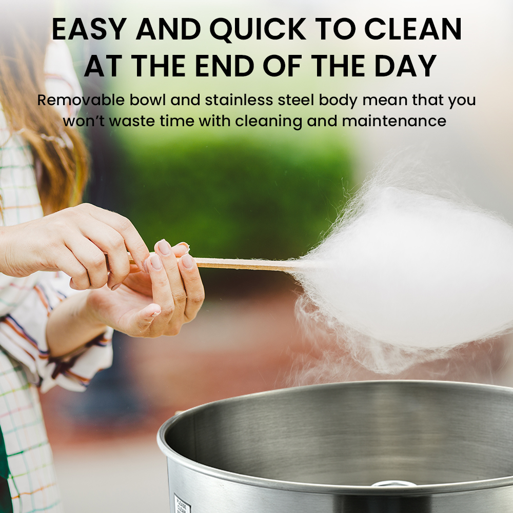 The Commercial Eurochef Fairy Floss Maker couldn’t be any easier to use; simply preheat, pour the ingredients and start twirling – while you watch the profits roll in!