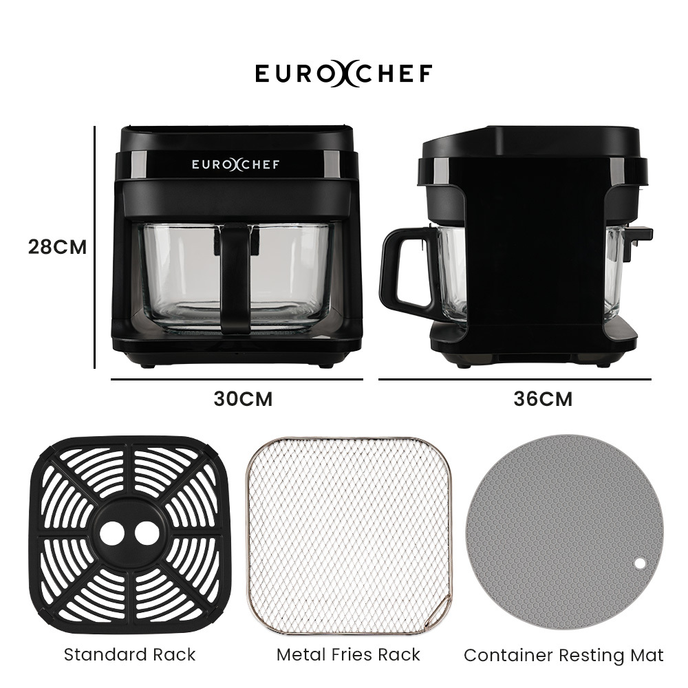 EUROCHEF 6.5L Air Fryer, Electric Digital Airfryer with Glass Container, Black