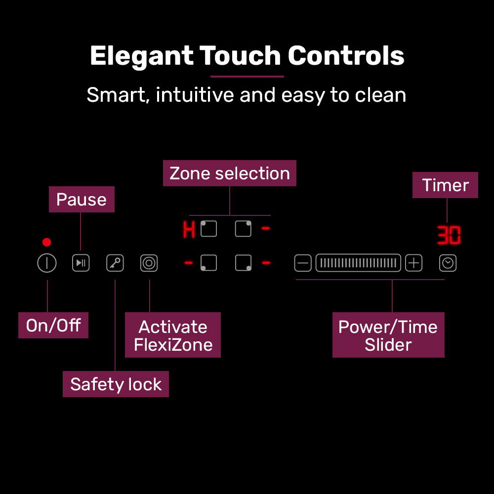 • 4 Cooking zones with 2 FlexiZone extendable hobs