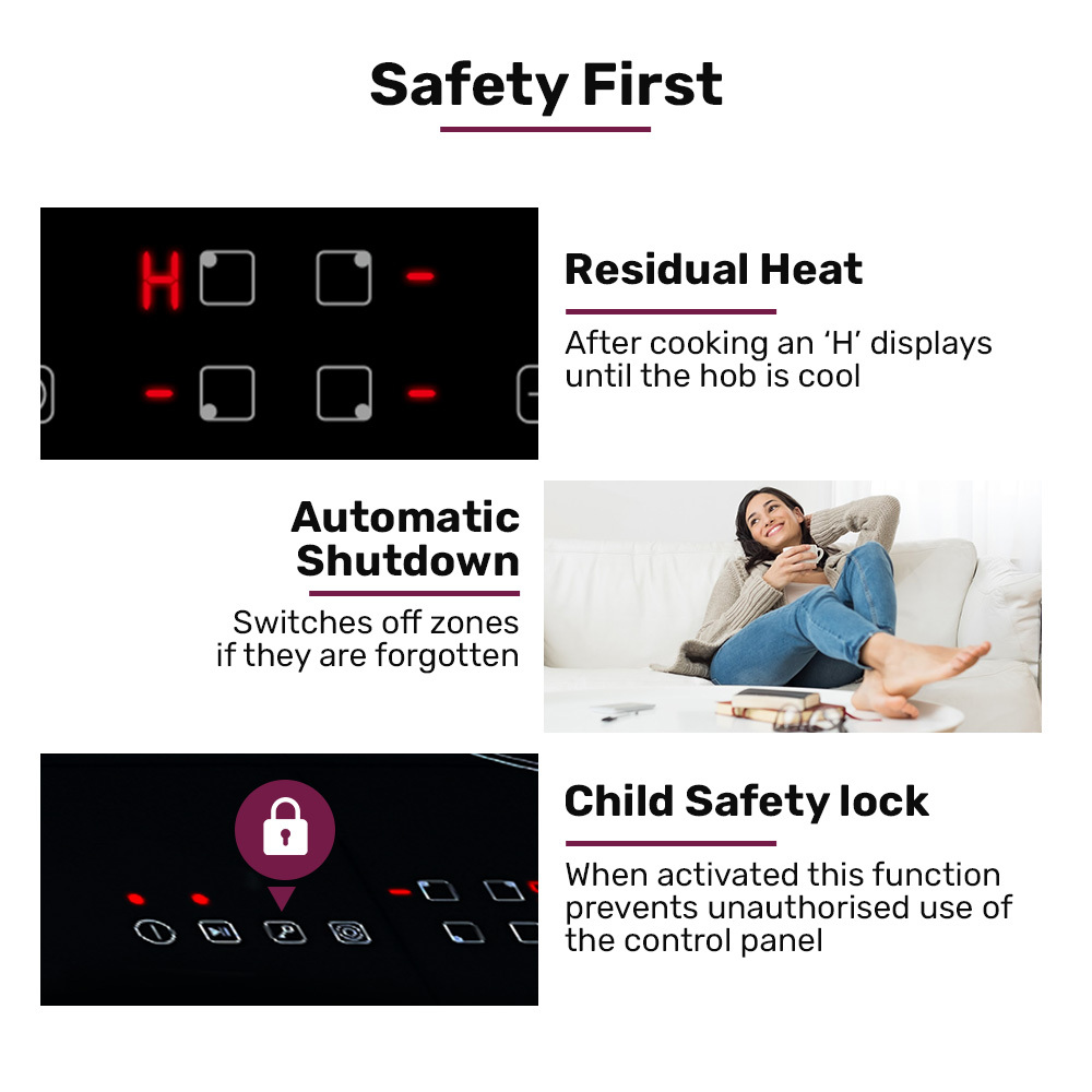 • Safety Features: Child Lock, Residual heat indicator, Automatic power off