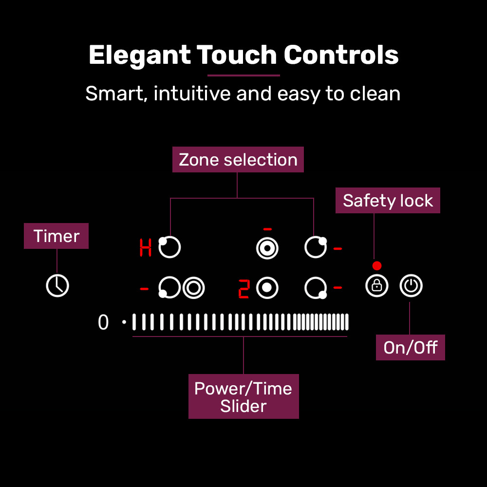 EuroChef 30cm 2 Zone Induction Cooktop, 3300W Electric, Touch Controls