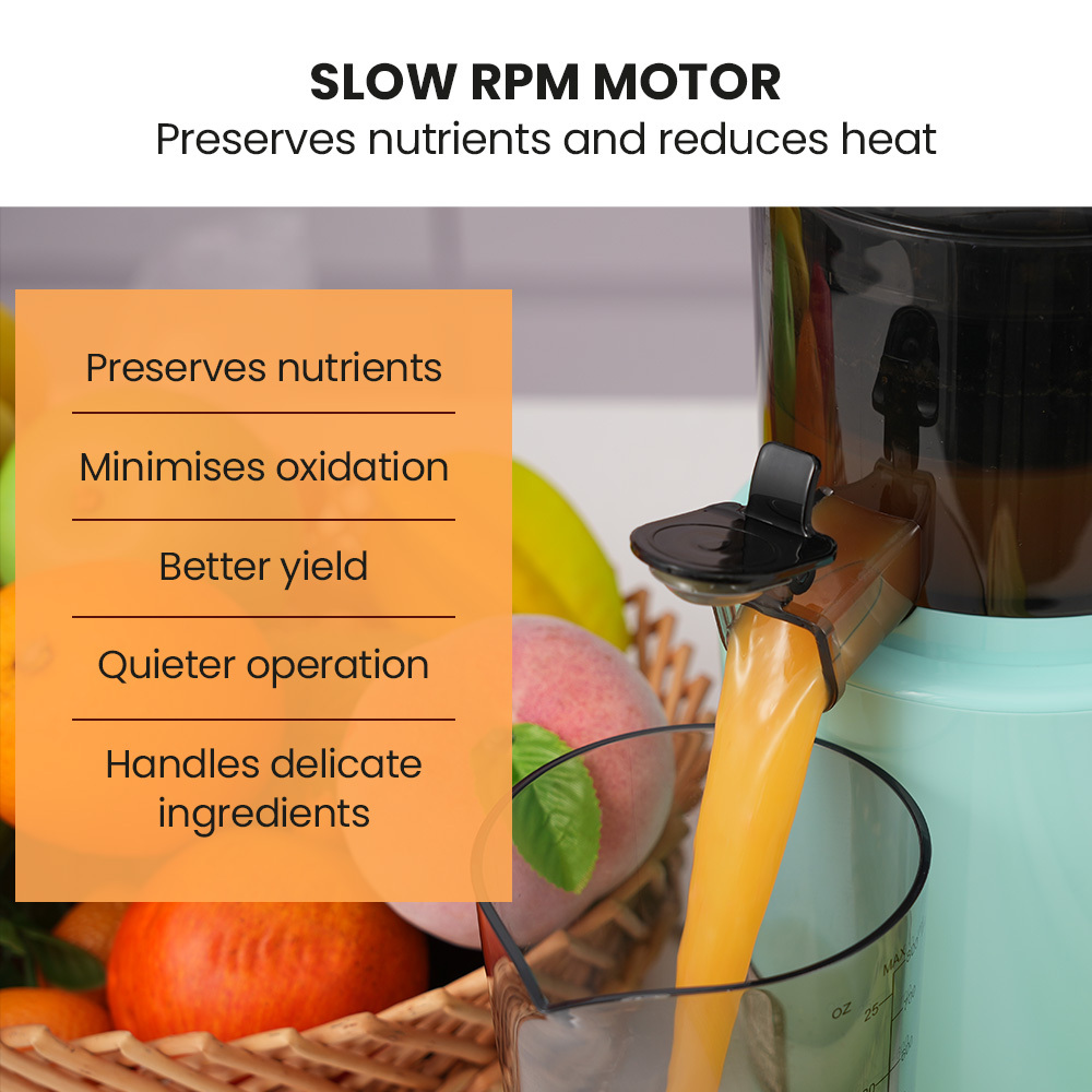 • Slow juicing at 55 RPM for maximum nutrition