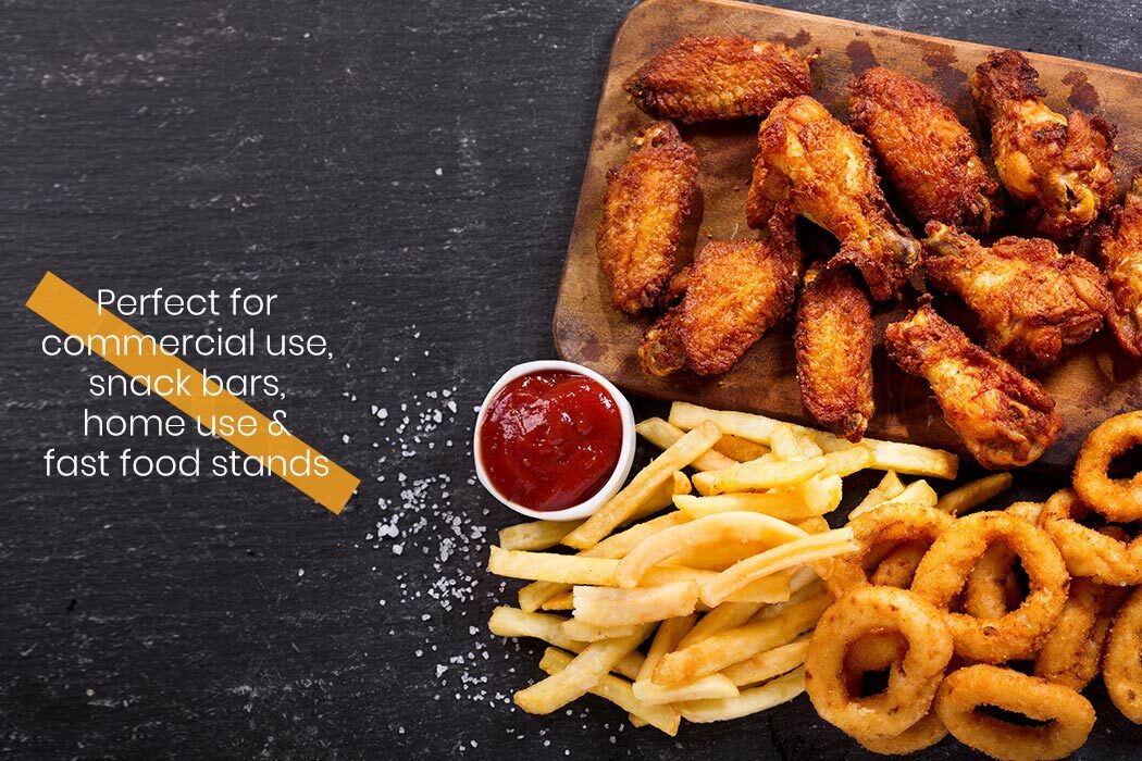Fry your signature food to perfection every time with this professional Euro-Chef unit. Quickly heating up to a piping hot 200C, it will have your customers return for more crisps while you’re still counting the dough.
