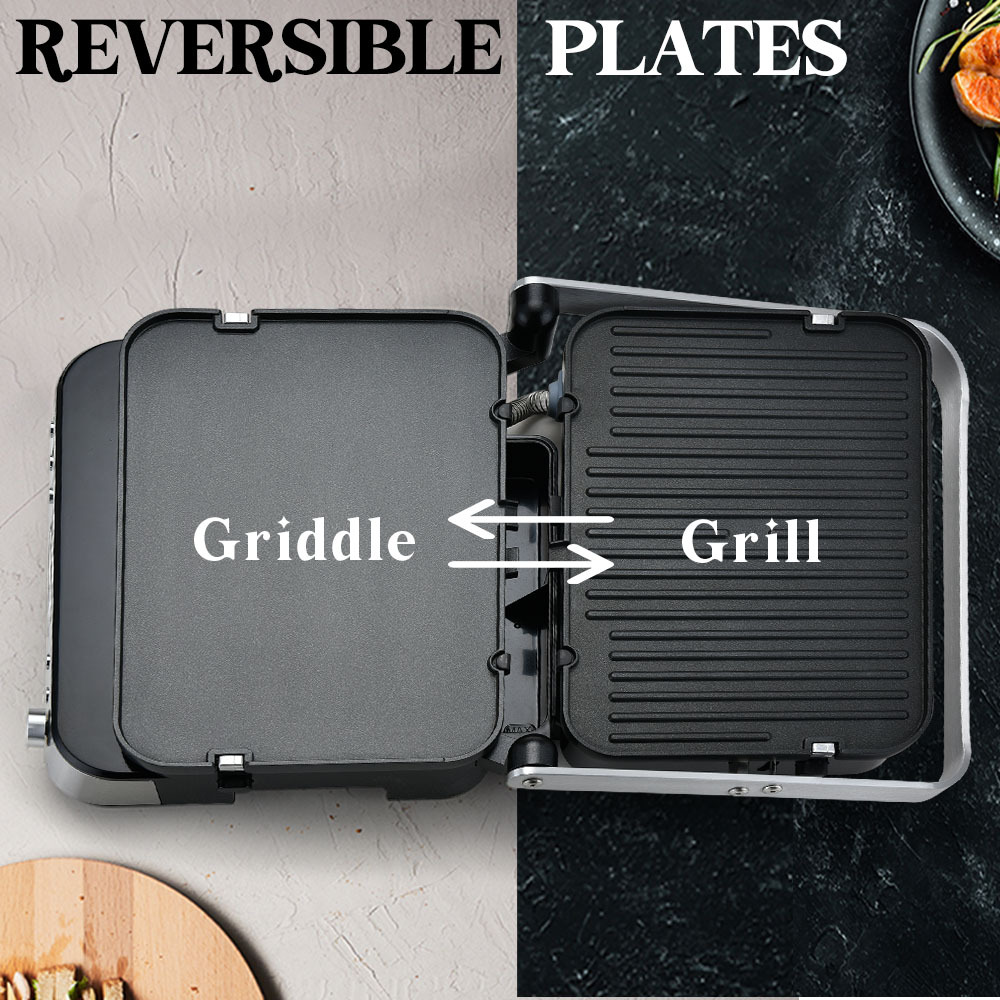 EUROCHEF Smart Multi Contact Grill Sandwich Press Panini Waffle Maker Griddle Stainless Steel