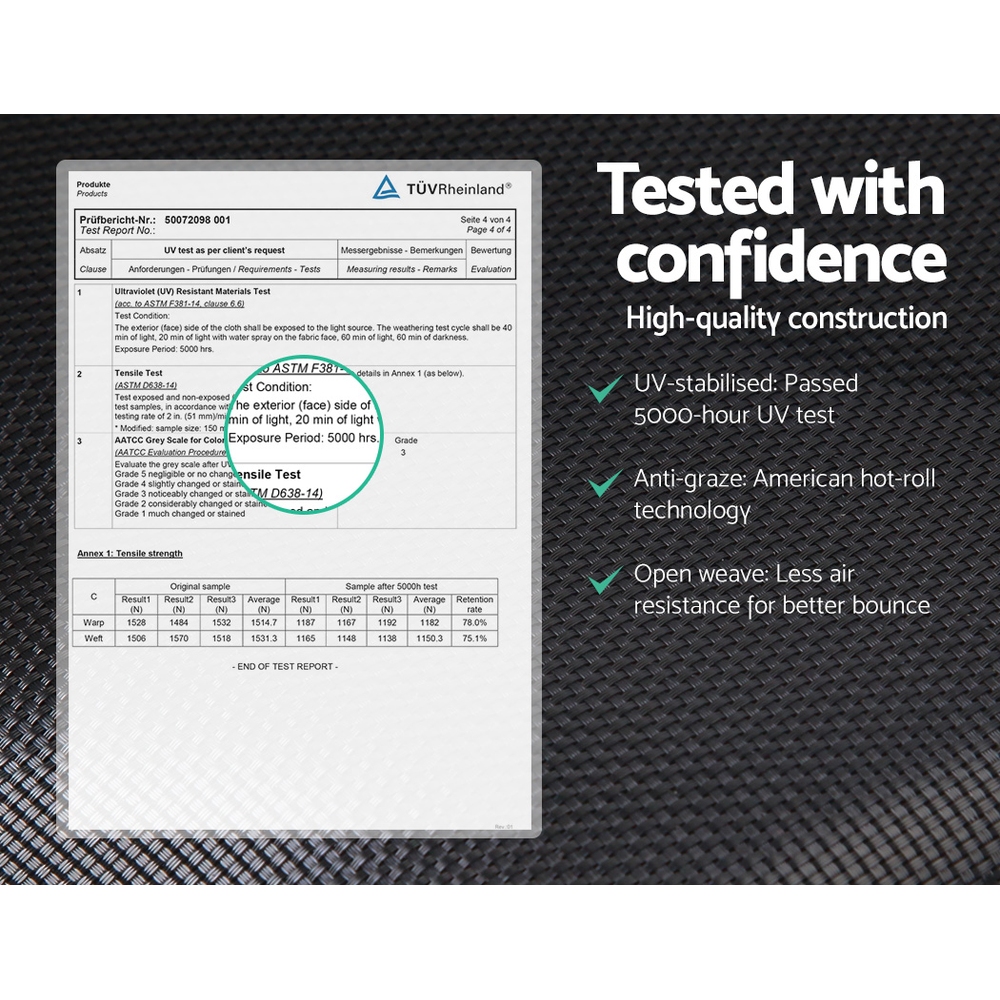 Bounce to your heart’s content with the Trampoline. With its superior bounce characteristics featuring 108-piece triple rate springs, the 16-foot Trampoline enables safe and durable bouncing with no worries. The heavy-gauge steel framework is designed to handle all robust play and is UV-tested for quality and reliability. Other great features include a curve design for more rigidness, 20mm thick padding, anti-graze mat, safety netting and a double-lock zip-and-clip entry. Not least, the included basketball hoop, basketball and pump really adds an awesome fun factor to the entire ensemble.