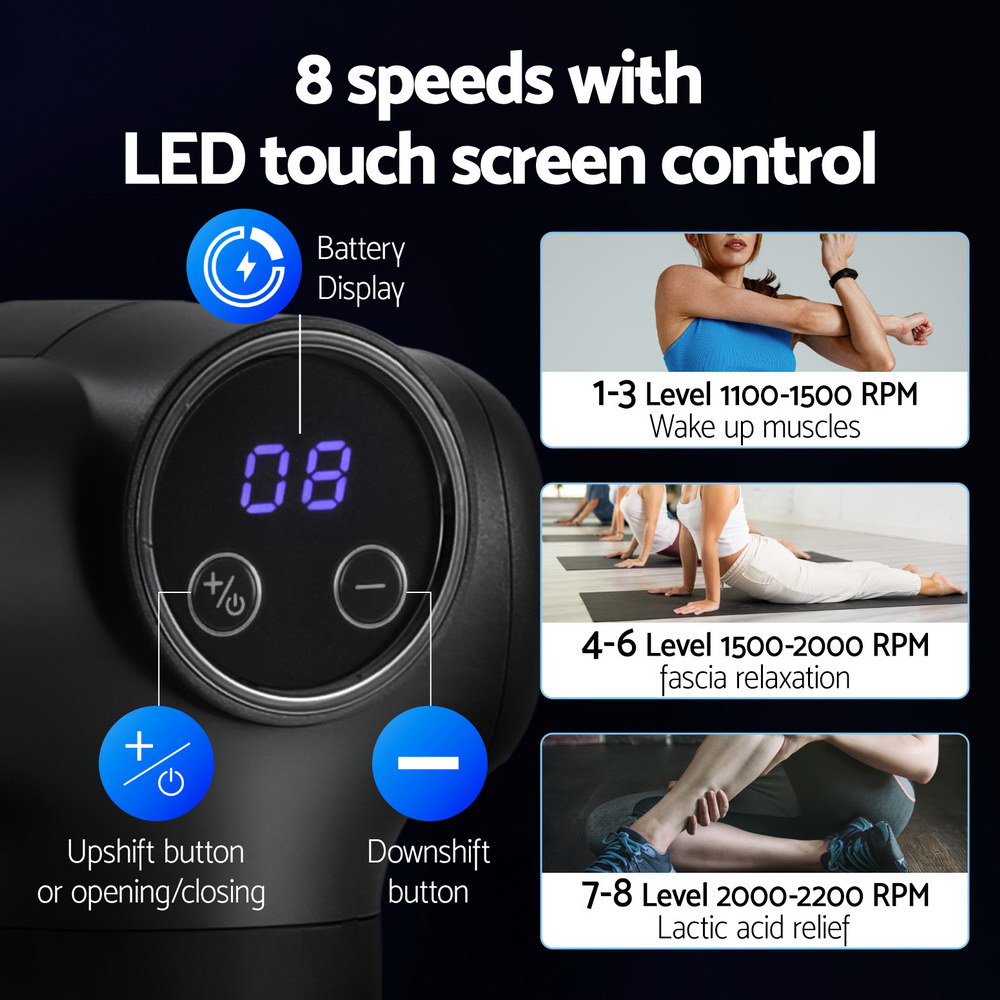 Everfit Massage Gun 8 Speed 4 Heads Vibration Muscle Massager Chargeable Black