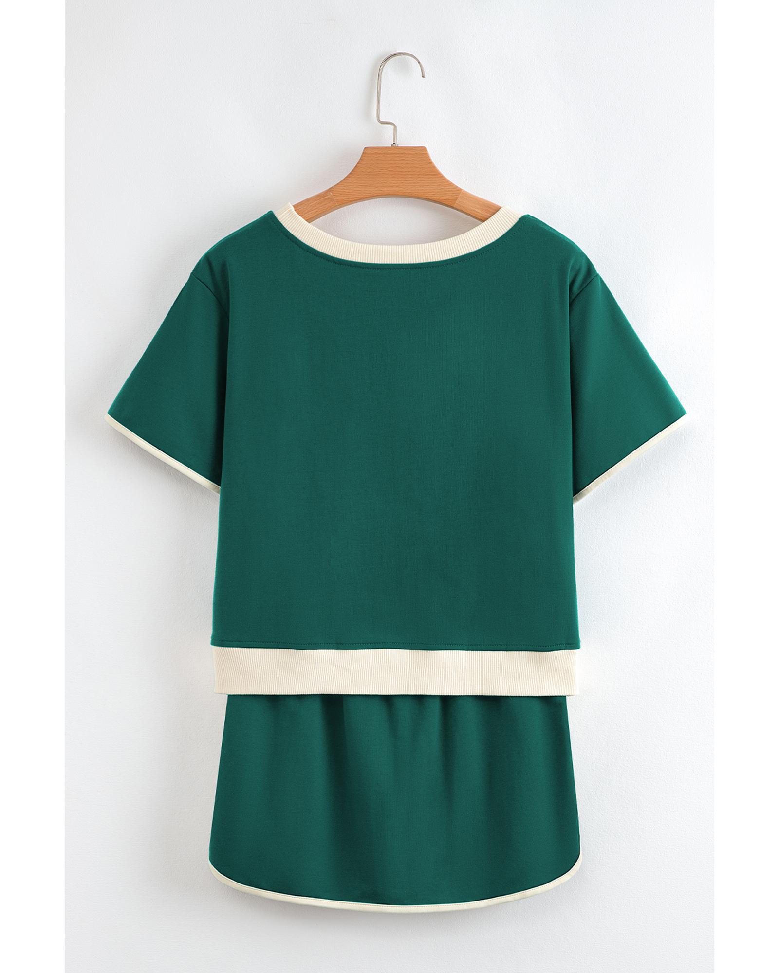 Evergreen Colorblock Edge Drop Shoulder T Shirt and Skirt 2Pcs Set – S