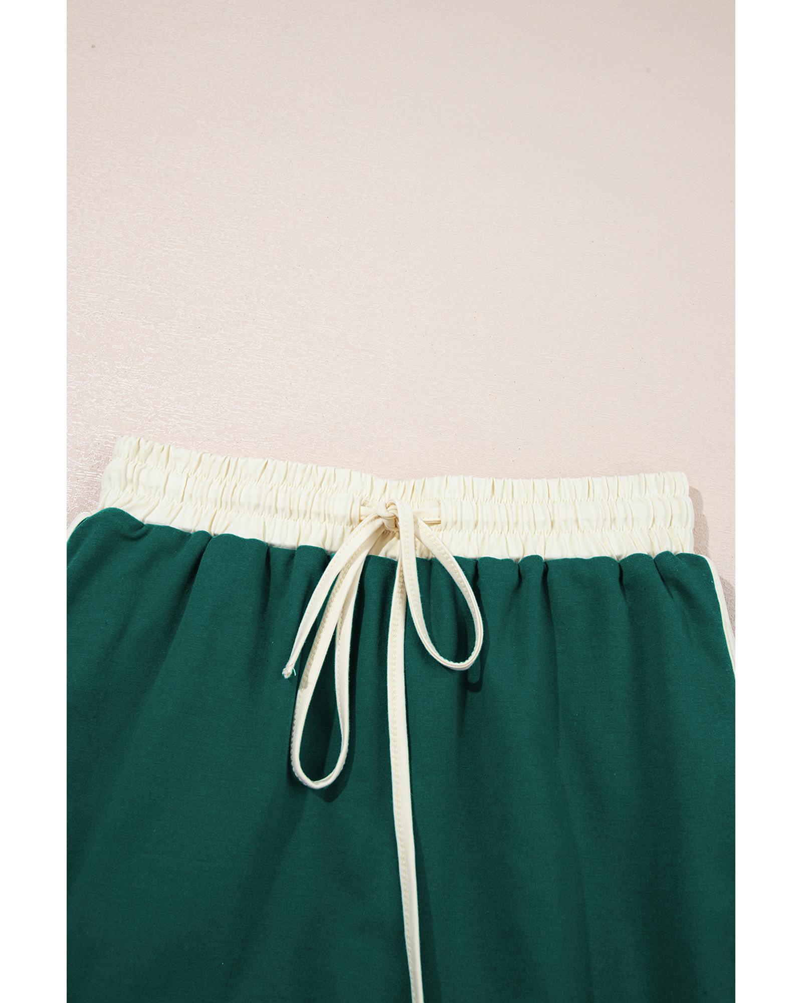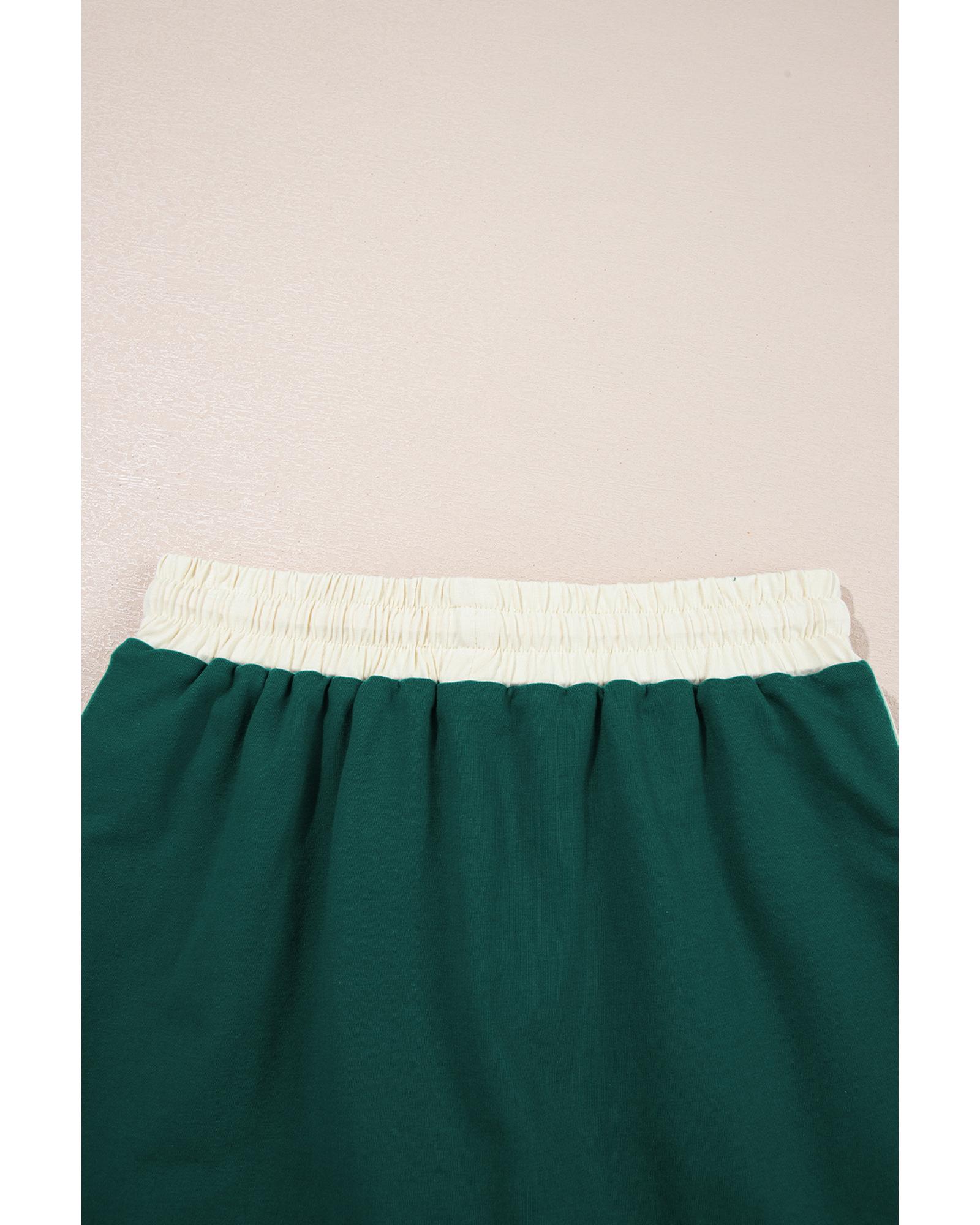 Evergreen Colorblock Edge Drop Shoulder T Shirt and Skirt 2Pcs Set – XL