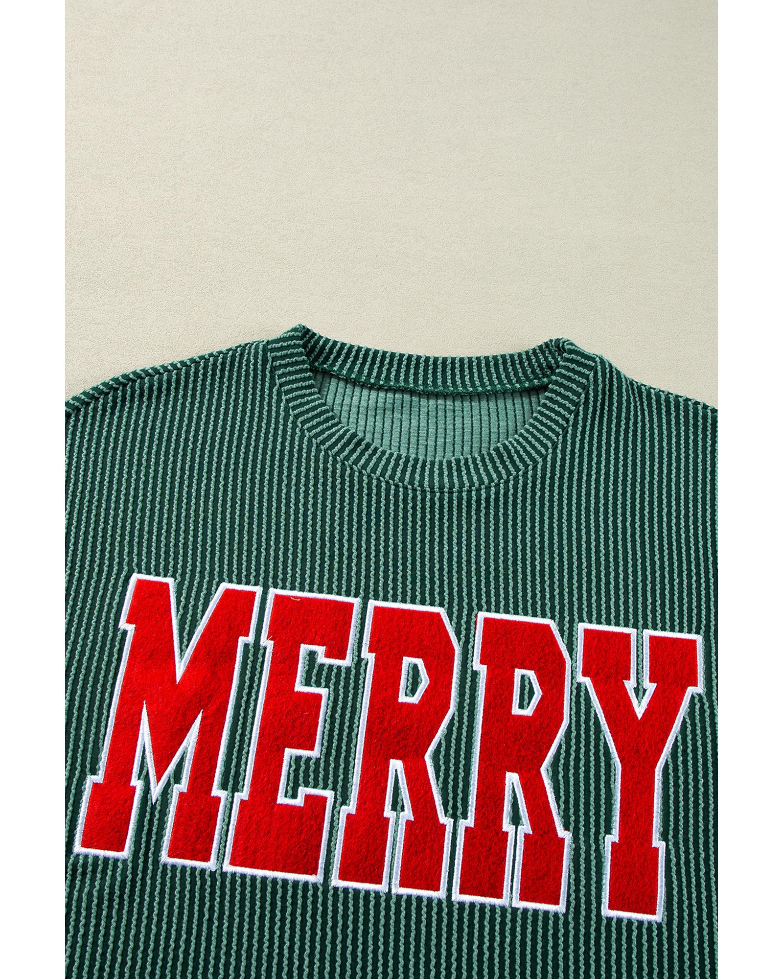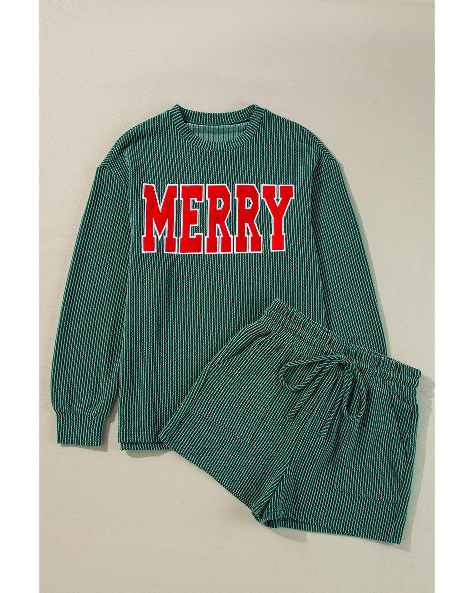 - Evergreen Corded MERRY Graphic Long Sleeve Top and Shorts Set