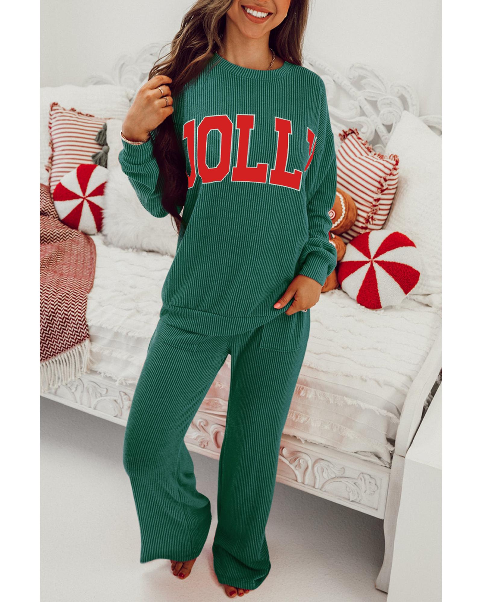 Evergreen JOLLY Corded Long Sleeve Top and Pockets Pants Set – XL