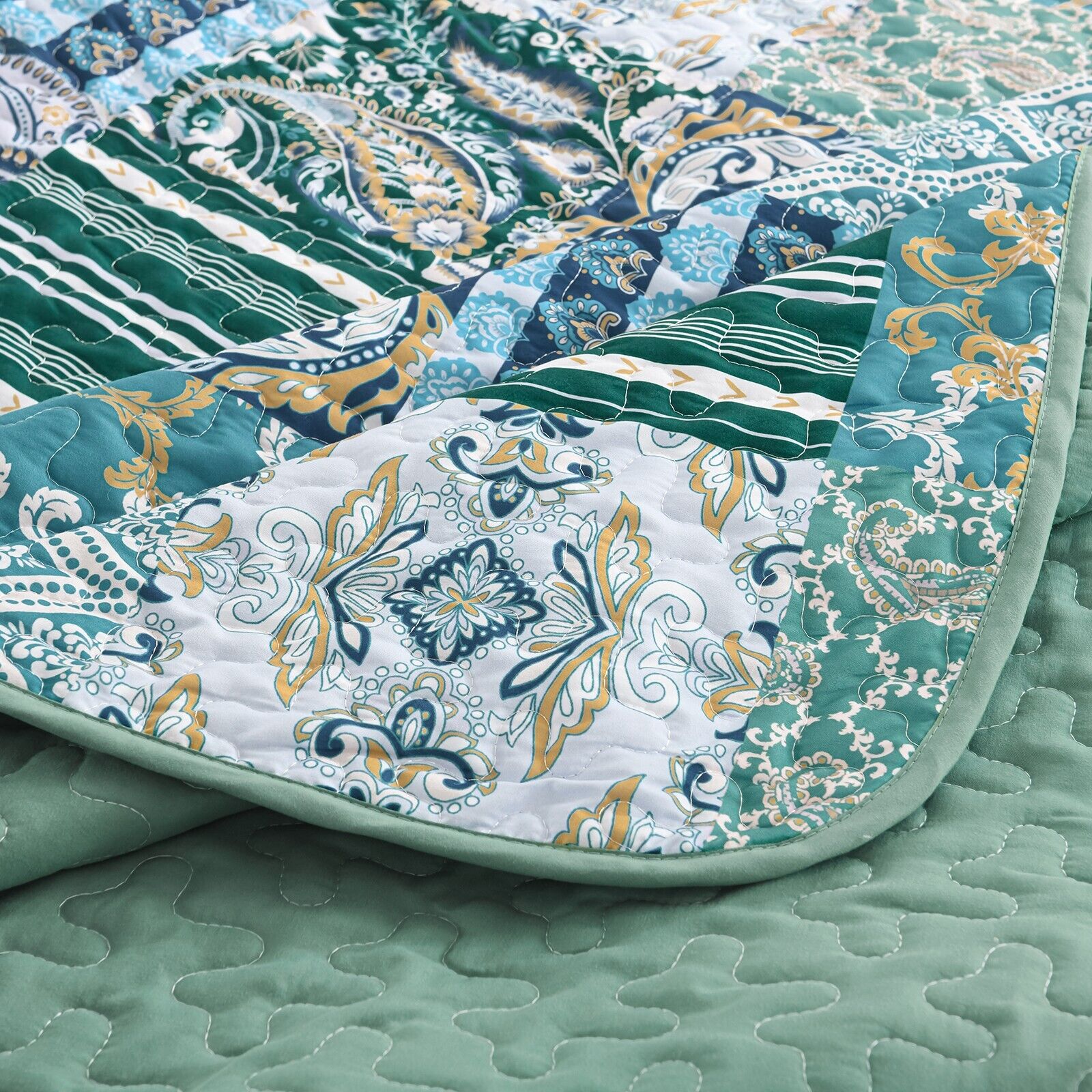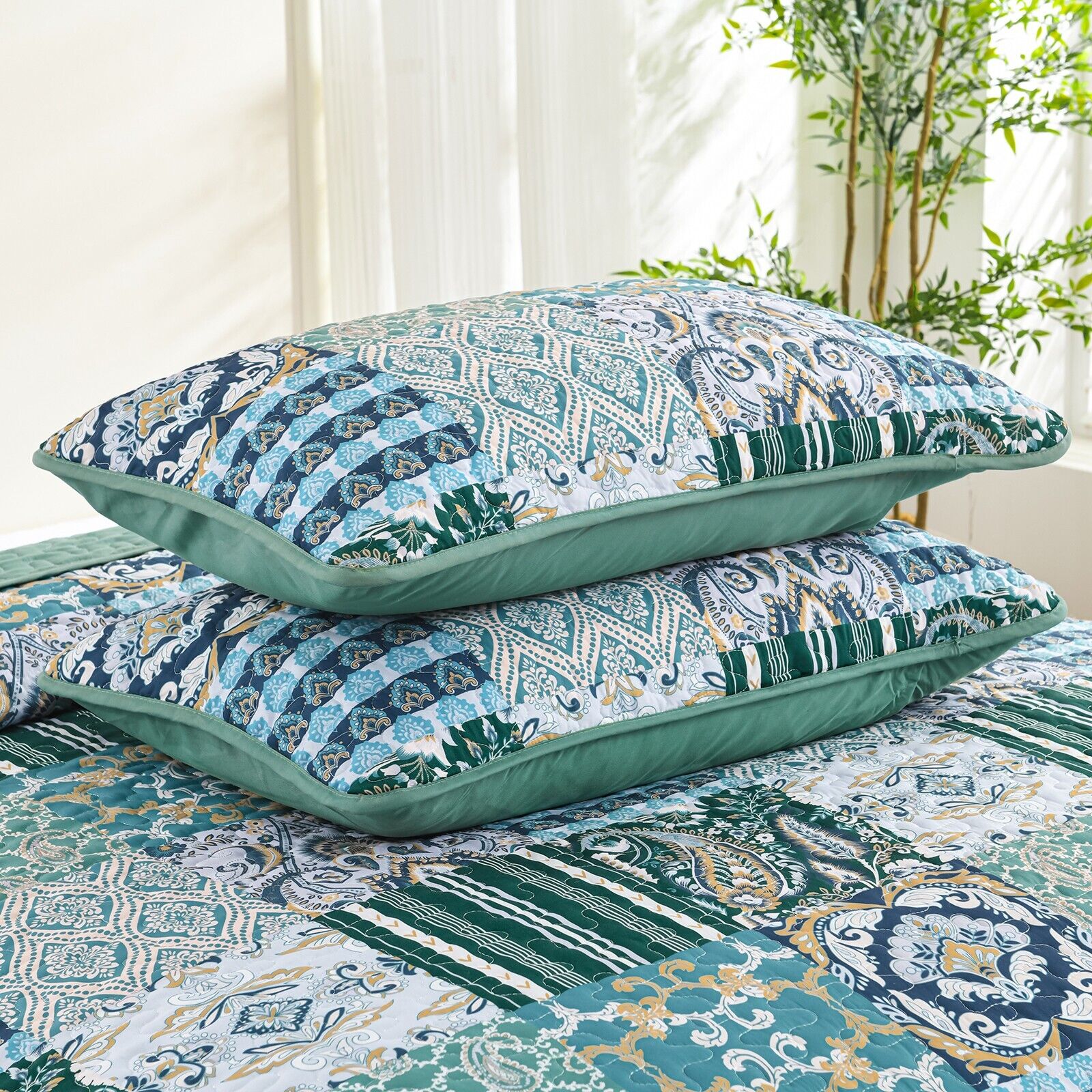 Vintage Delicate Teal floaral Pattern 3 Pc Bedspread & Pillow Cover Set