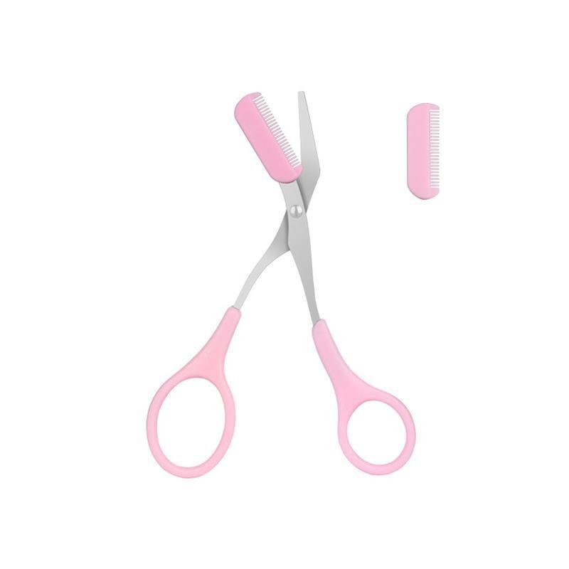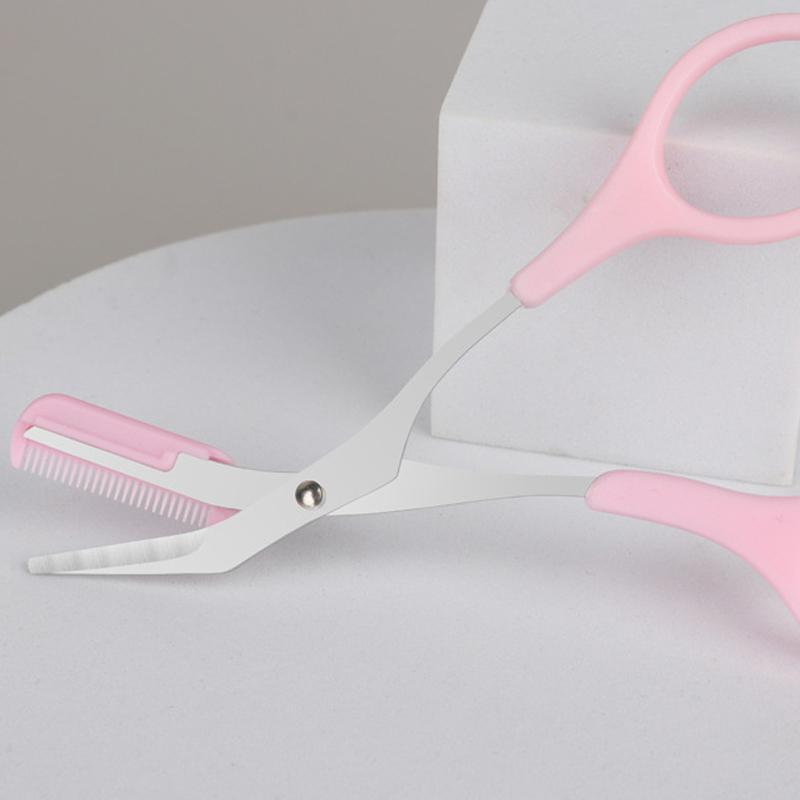 Eyebrow Trimmer Grooming Scissors Eyelash Thinning Shears Comb Brow Shaping Tool – Pink