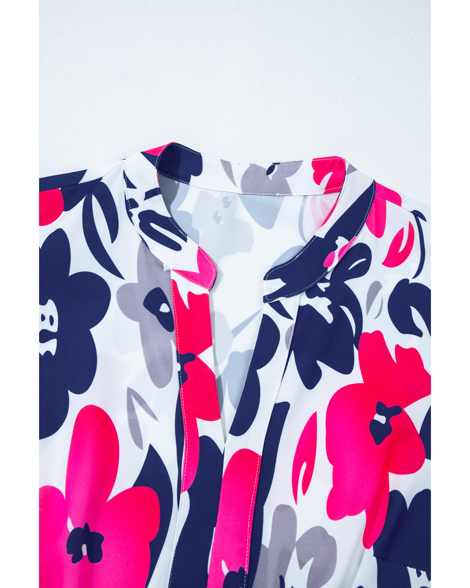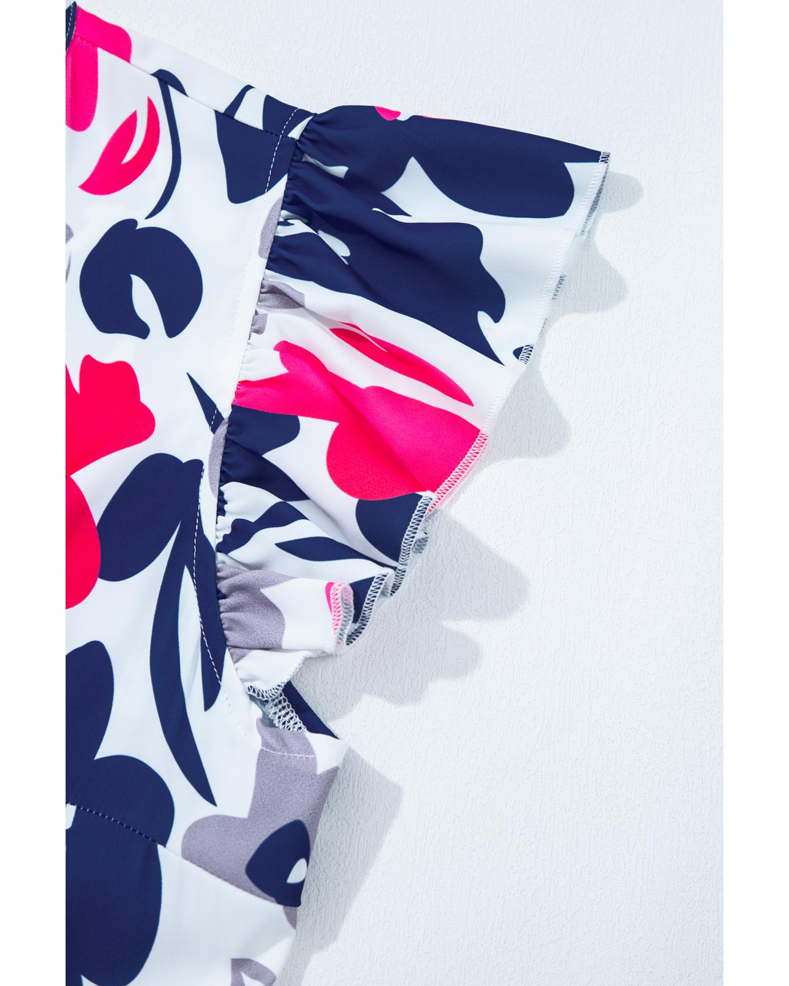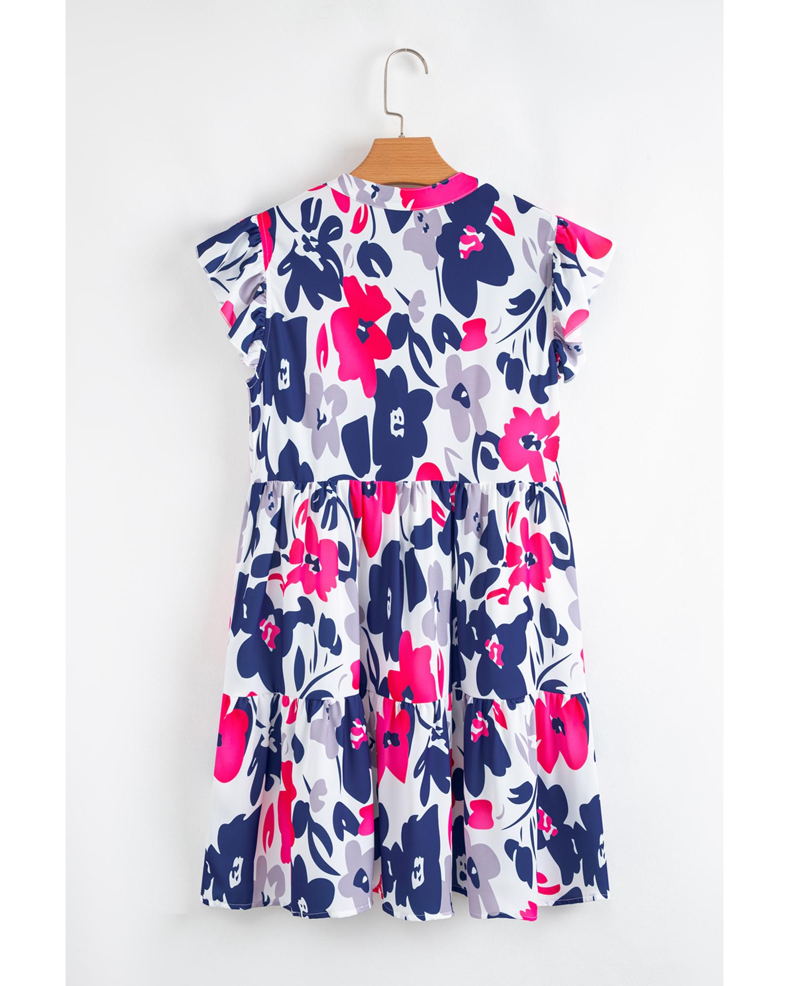 - Fashion Floral Print Notched Neck Flutter Sleeve Mini Dress