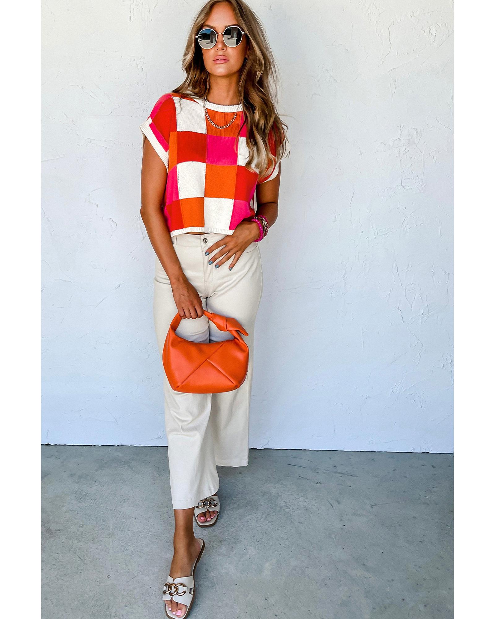 Fiery Red Color Block Cap Sleeve Sweater – L